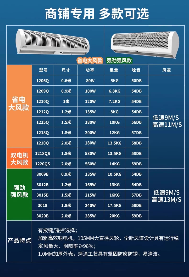 Meila 바람 커튼 기계 상업 바람 커튼 기계 조용한 빛 소리 레스토랑 문 공기 커튼 슈퍼마켓 전용 상점