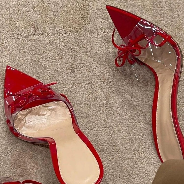 GR 뾰족한 발가락 하이힐 2025 여름 새 도착 활어 발가락 샌들 오픈 발가락 투명 샌들 여성용 스틸레토 힐스토어 가기