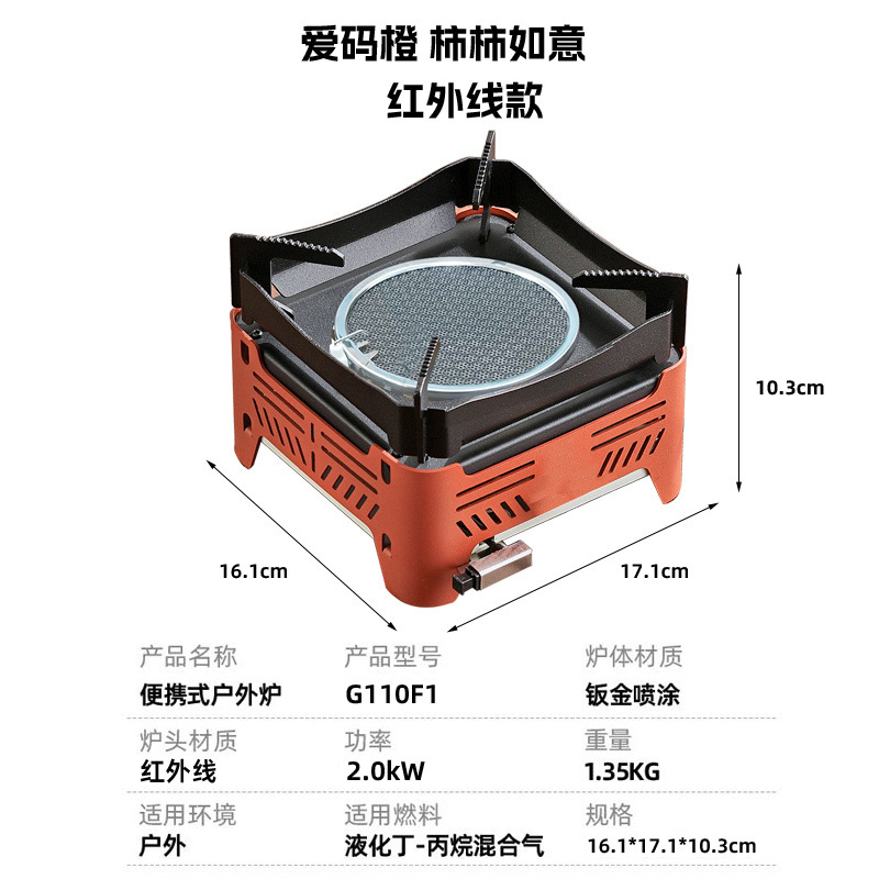 • 손잡이 스위치가 있는 주황색 적외선 버너