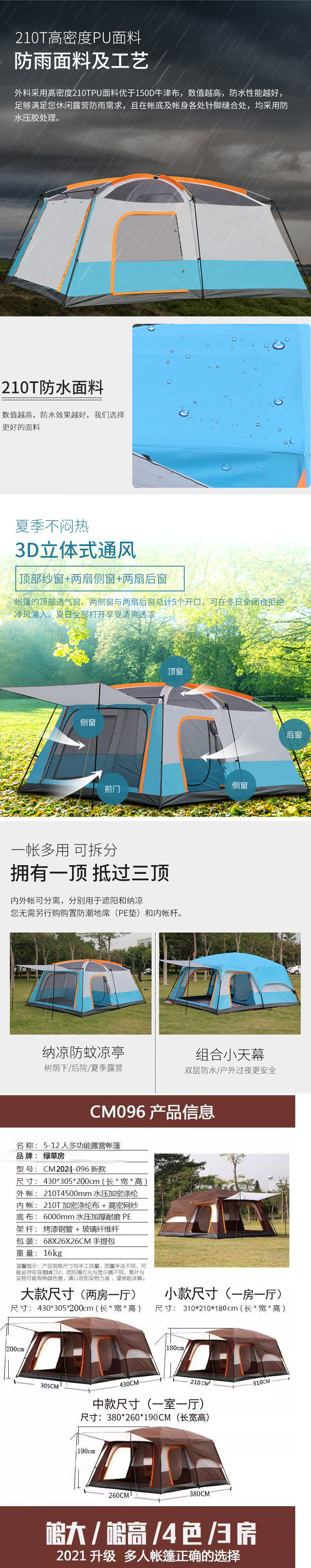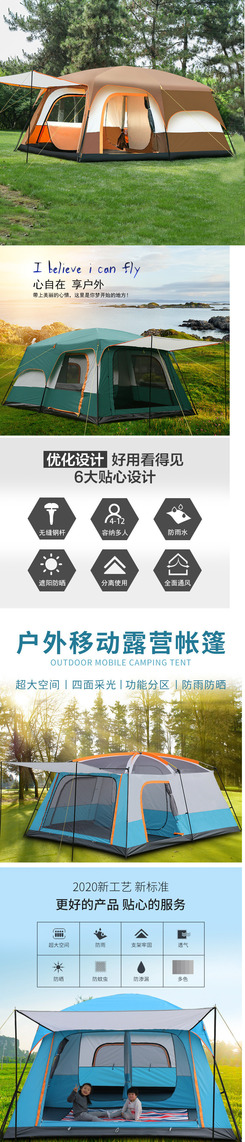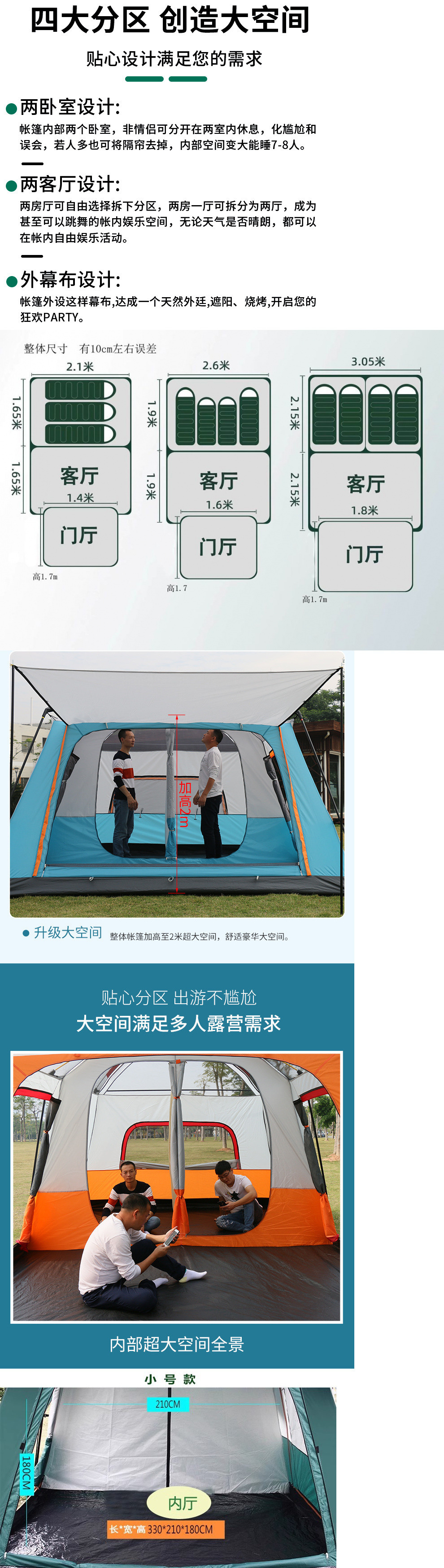 캠핑 텐트 야외 두꺼운 2 방 1 홀 휴대용 접이식 캠핑 피크닉 야간 해변 텐트 장비 도매