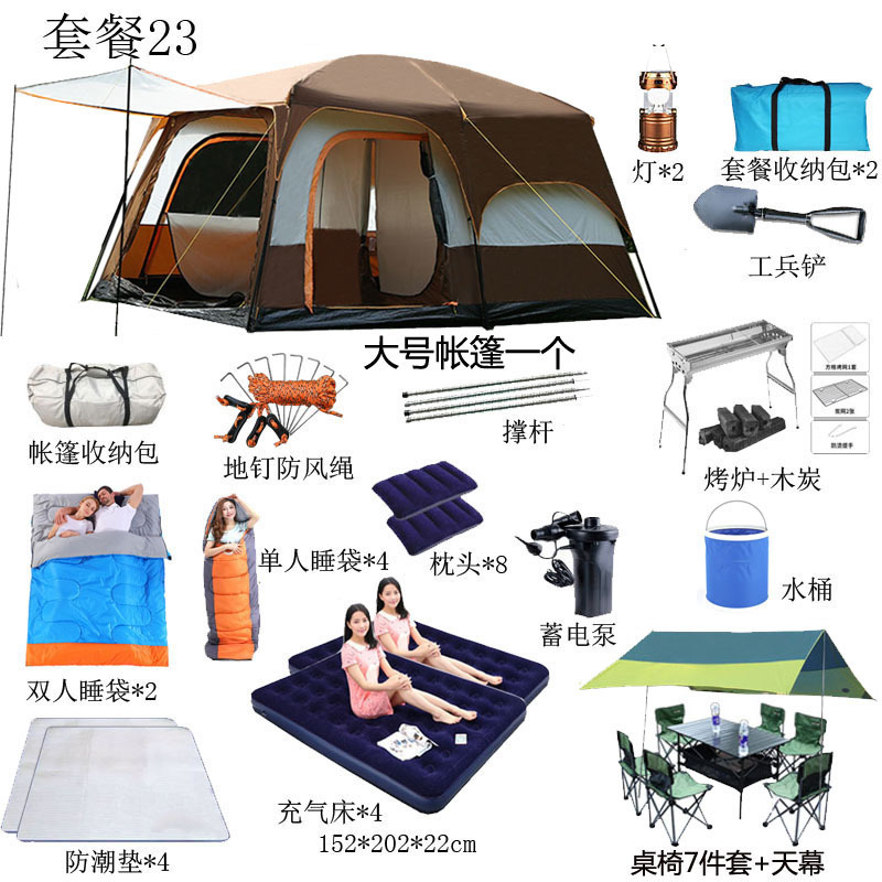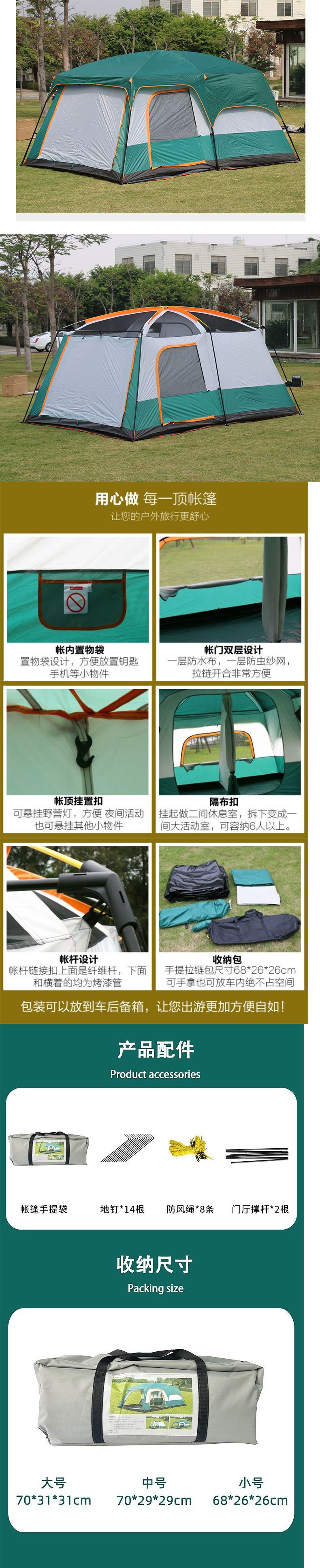 캠핑 텐트 야외 두꺼운 2 방 1 홀 휴대용 접이식 캠핑 피크닉 야간 해변 텐트 장비 도매스토어 가기