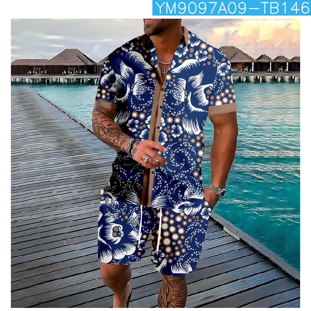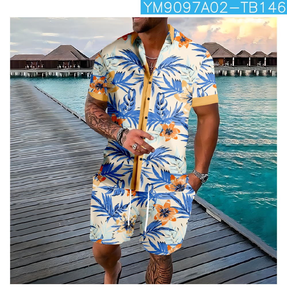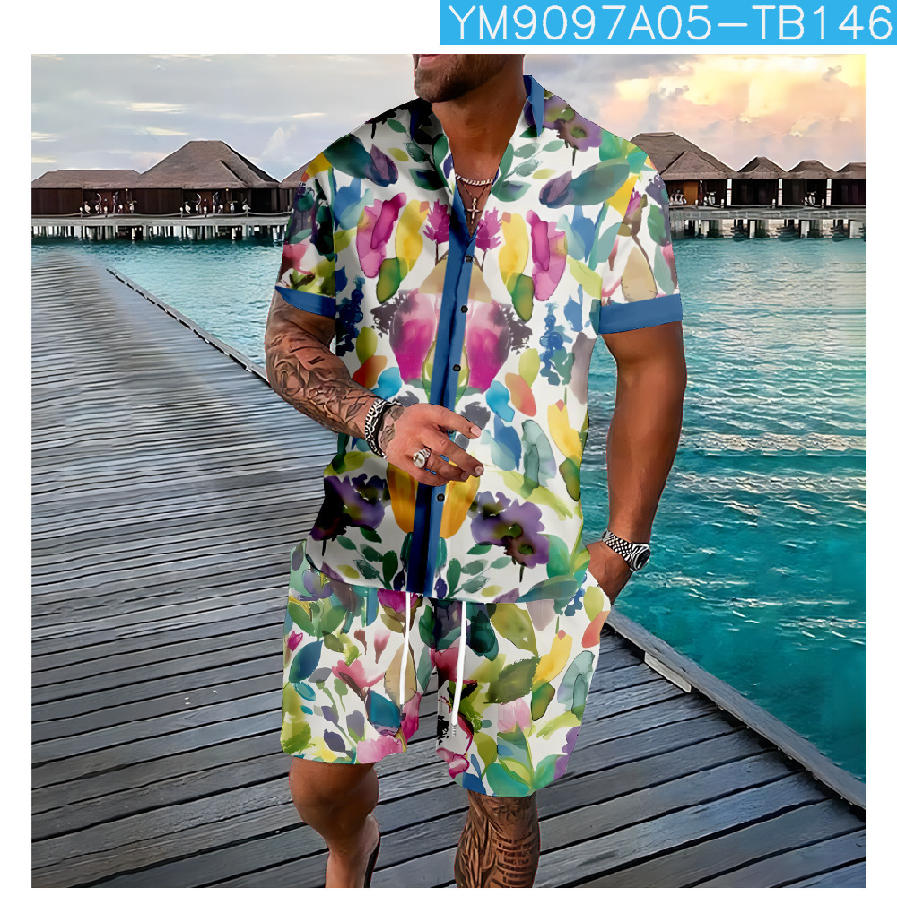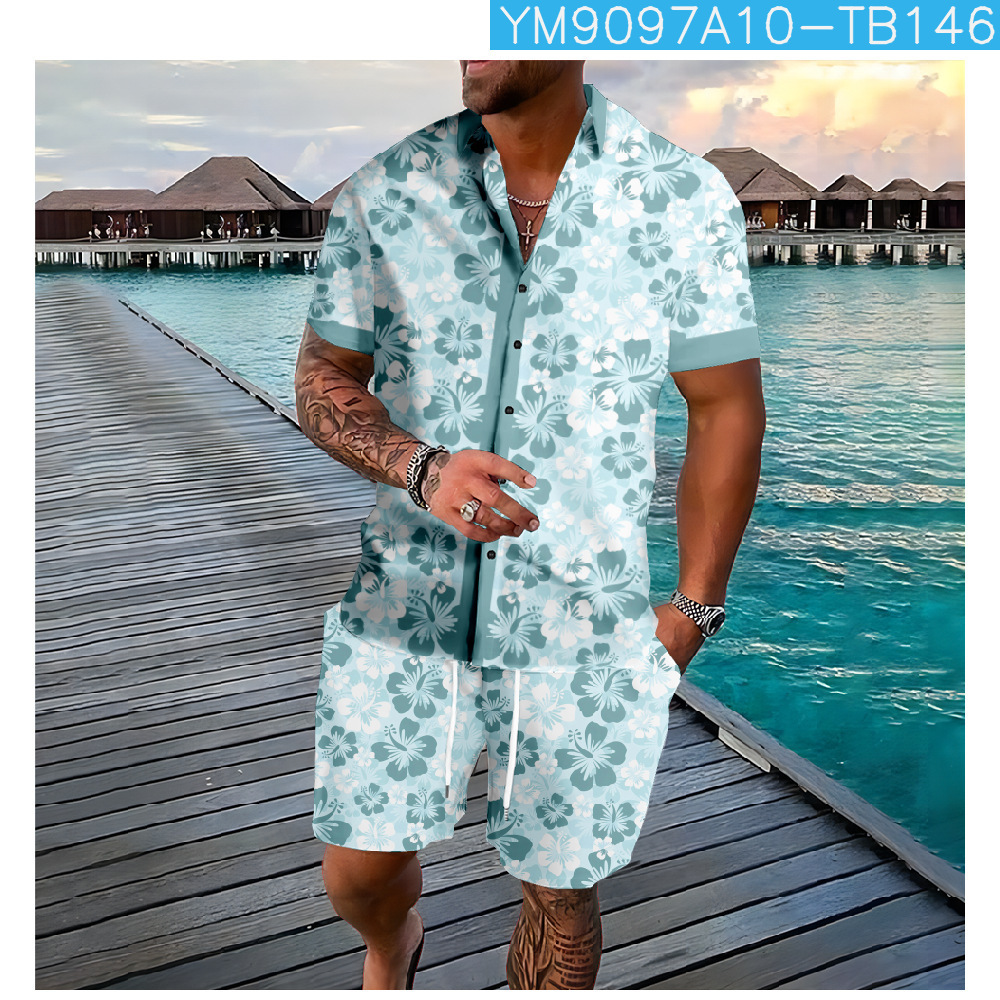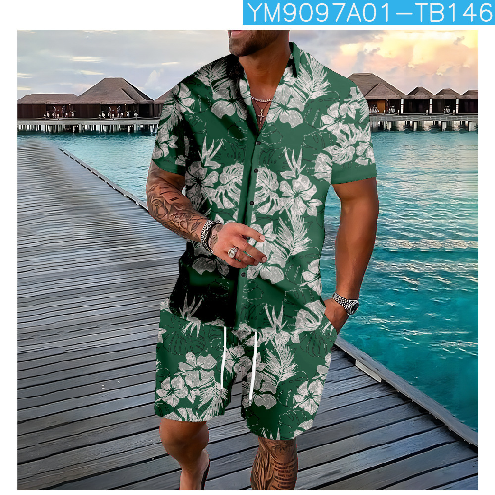 하와이 3D 꽃 인쇄 캐주얼 남성 카디건 여름 짧은 소매 셔츠 비치 바지 반바지 세트 POD스토어 가기