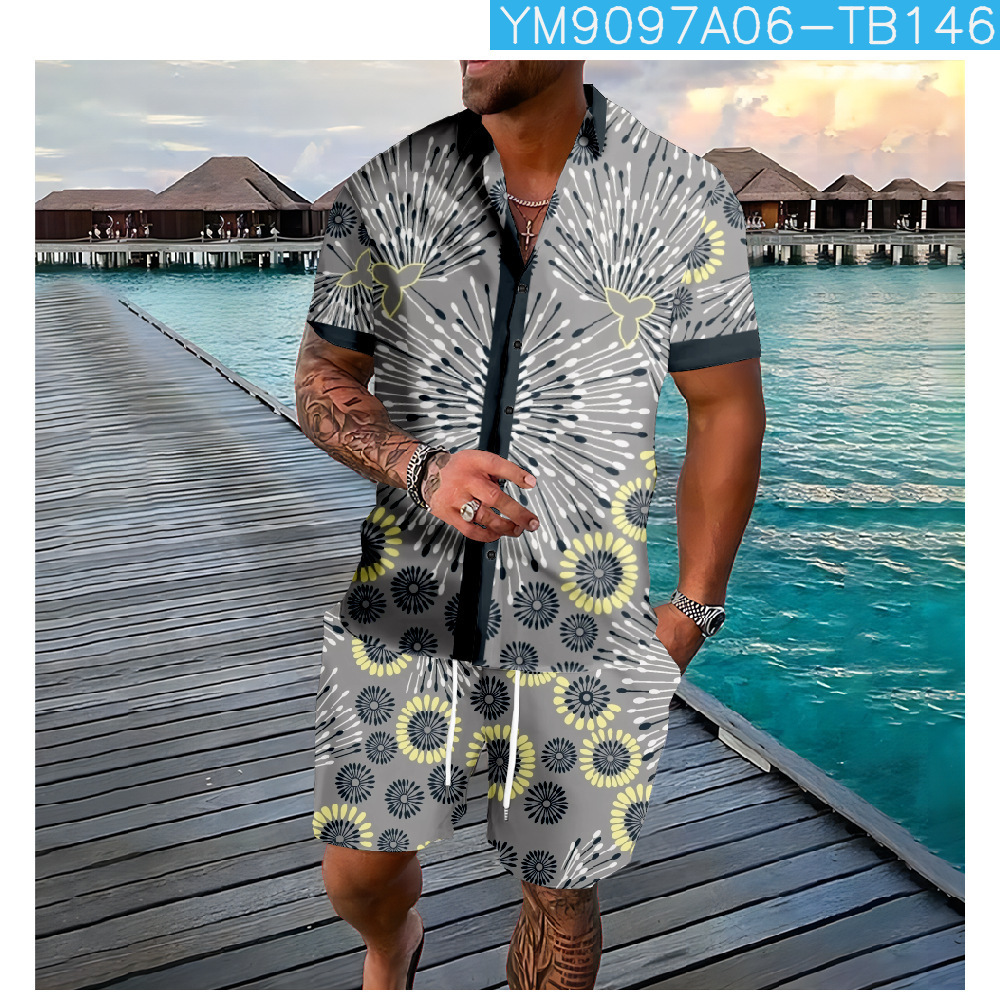 하와이 3D 꽃 인쇄 캐주얼 남성 카디건 여름 짧은 소매 셔츠 비치 바지 반바지 세트 POD