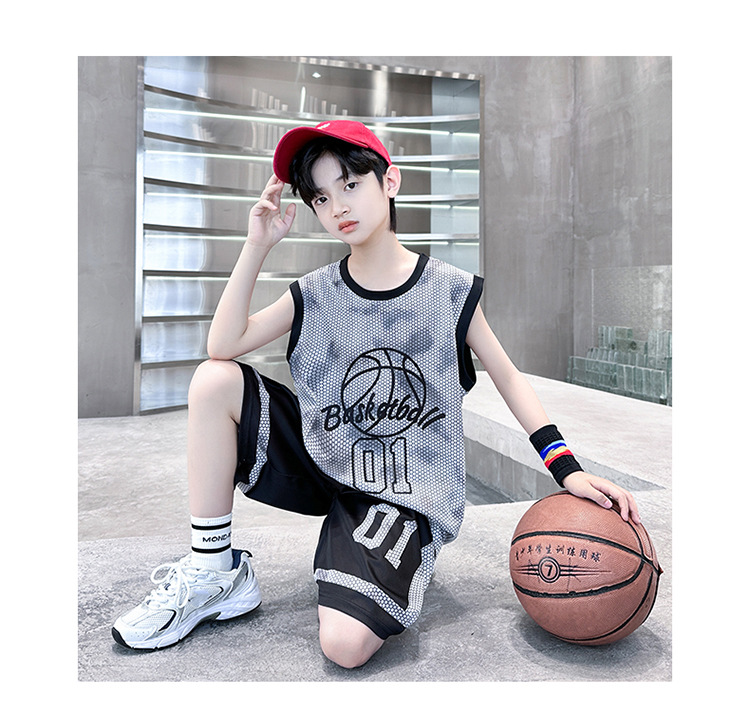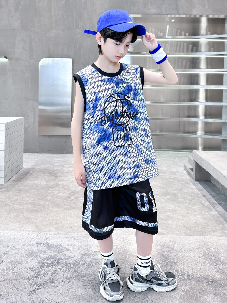 소년 농구 유니폼 정장 여름 얇은 섹션 2025 새로운 중대형 어린이 스포츠 여름 의류 어린이 속건 조끼 저지