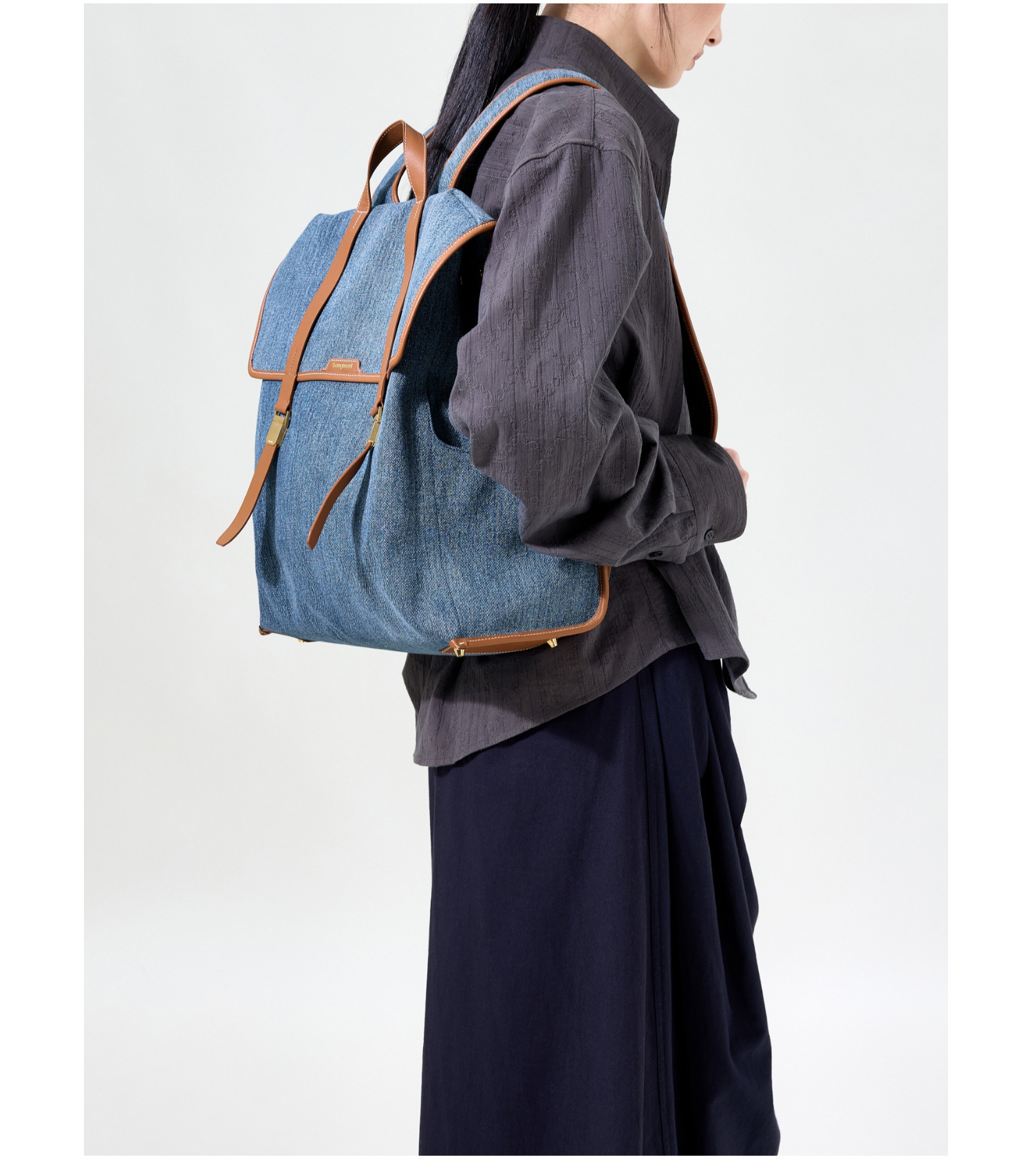 Songmont山下有松山行觅野系列竖版大号双肩包牛仔帆布户外背包