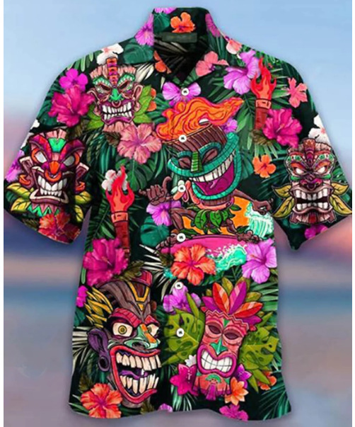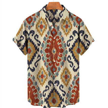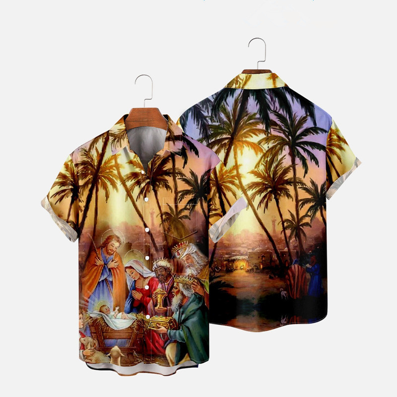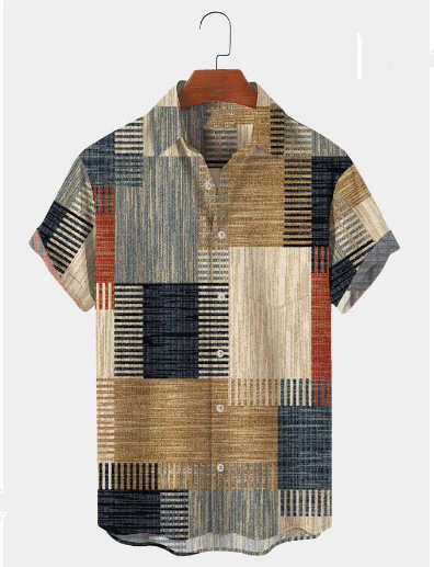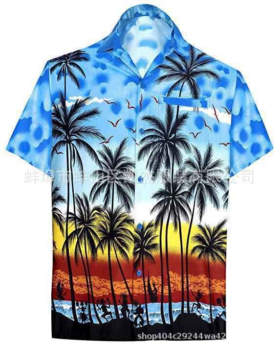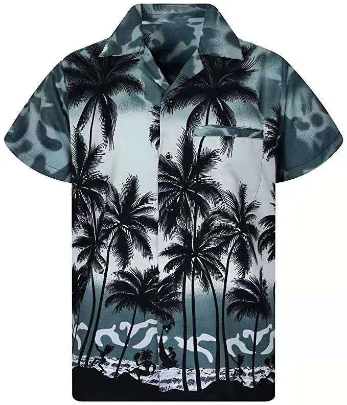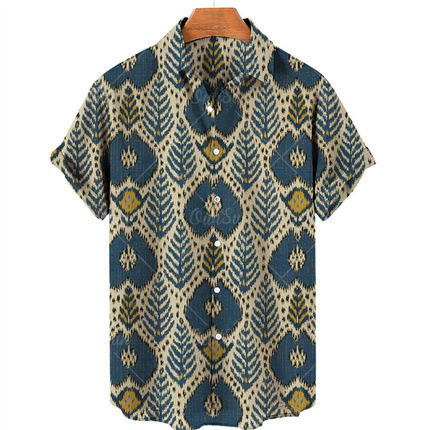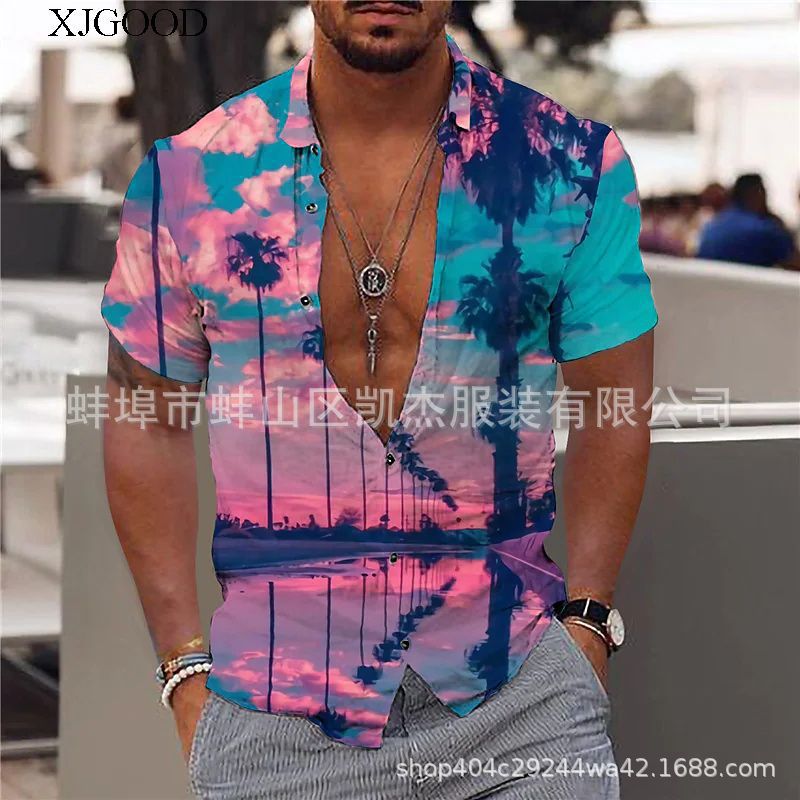 2025 새로운 여름 하와이 유럽과 미국의 얇은 남자의 3D 해변 인쇄 캐주얼 짧은 소매 남자의 셔츠 POD스토어 가기