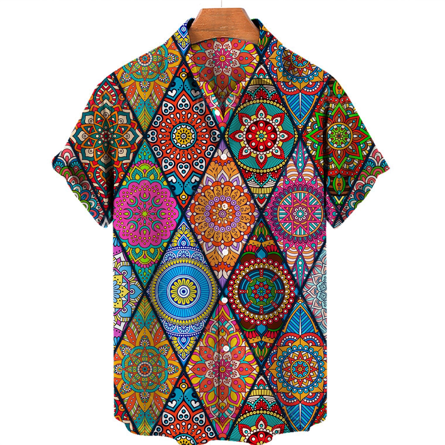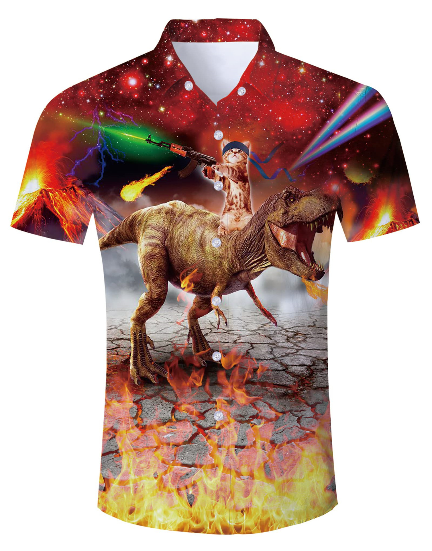2025 새로운 여름 하와이 유럽과 미국의 얇은 남자의 3D 해변 인쇄 캐주얼 짧은 소매 남자의 셔츠 POD