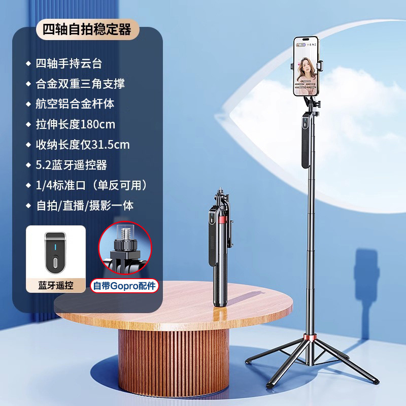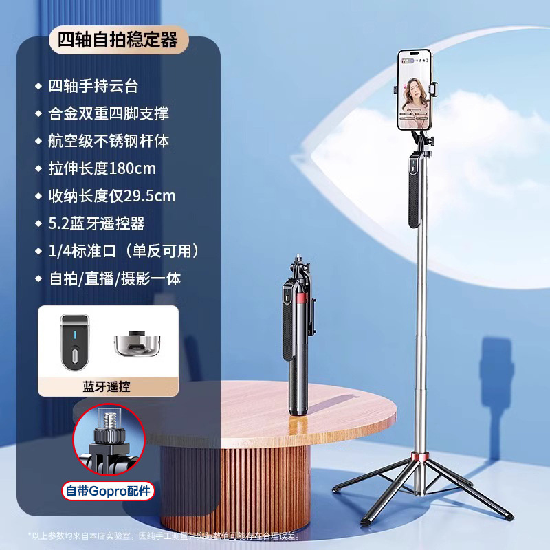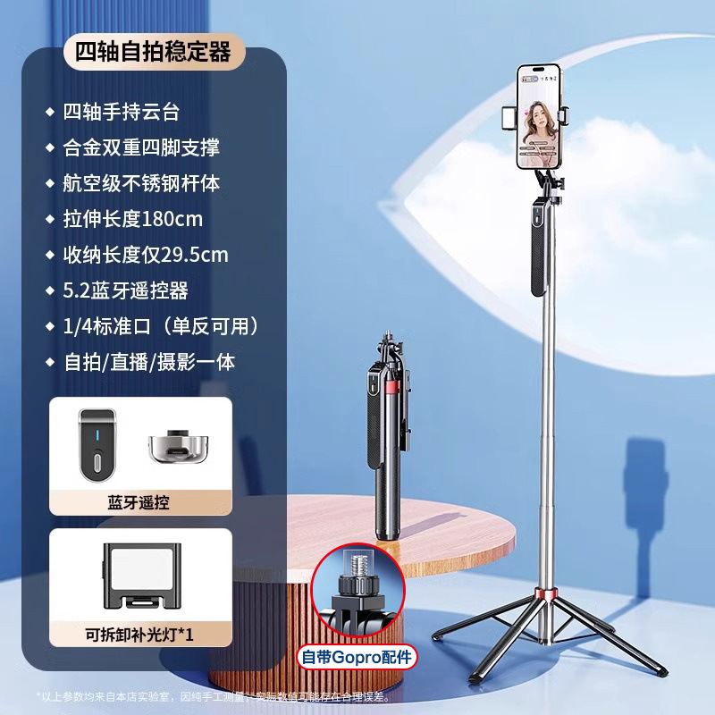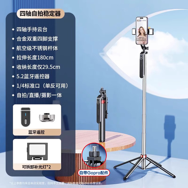 • [더블 립 스테인레스 스틸] Gopro/카메라와 호환 가능 - 1.8m [4축 손떨림 방지 모델] 휴대용 짐벌 - 단일 조명
