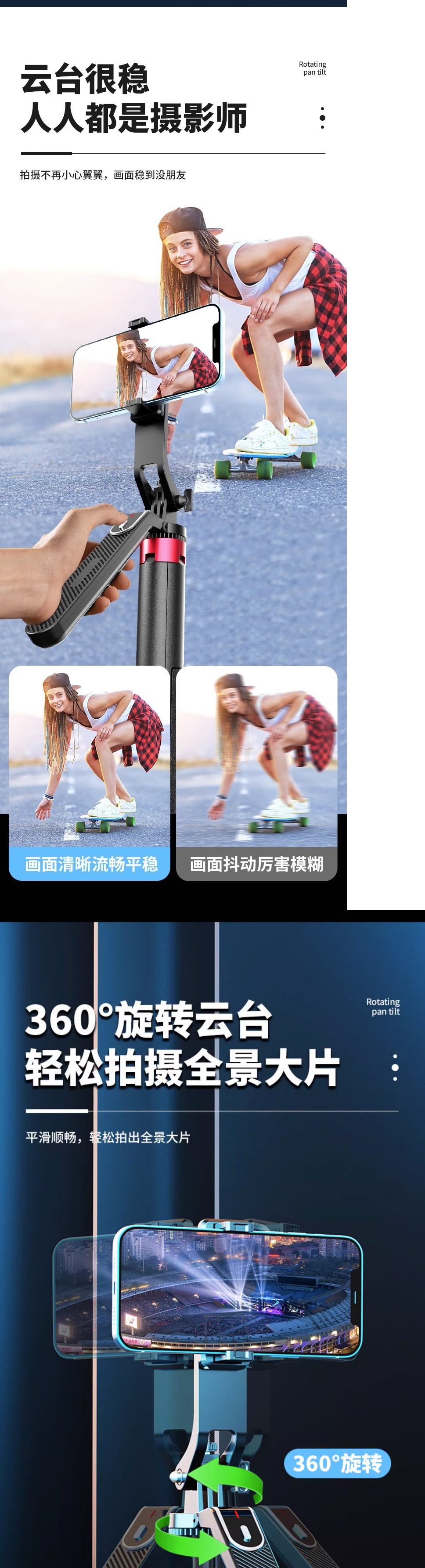 셀카 스틱, 쿼드 루포드. Mi 핸드 헬드 안티 쉐이크 PTZ 휴대 전화 라이브 쉐이크 음성 휴대용 바닥 랙스토어 가기