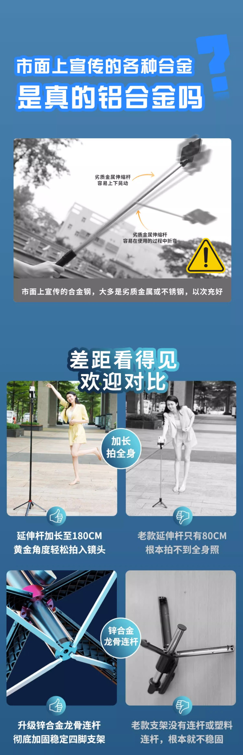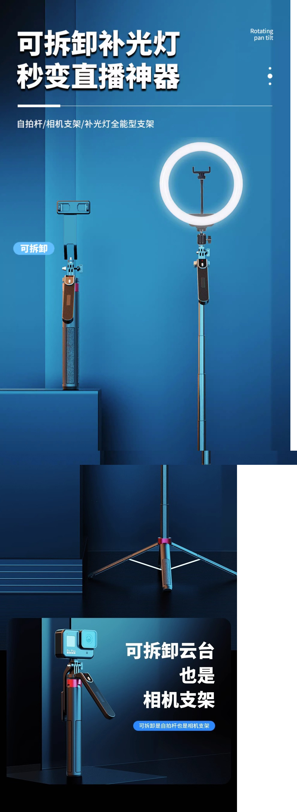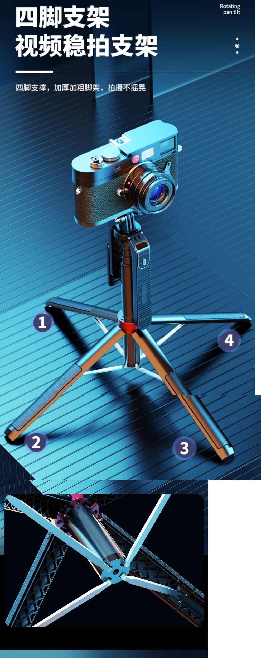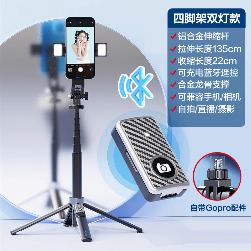 • [항공 알루미늄 합금] Gopro/카메라와 호환 가능 - 1.35m [4족 지지대] 합금 용골 - 이중 조명