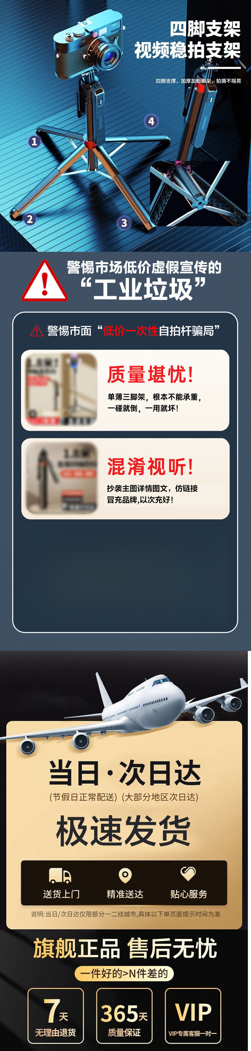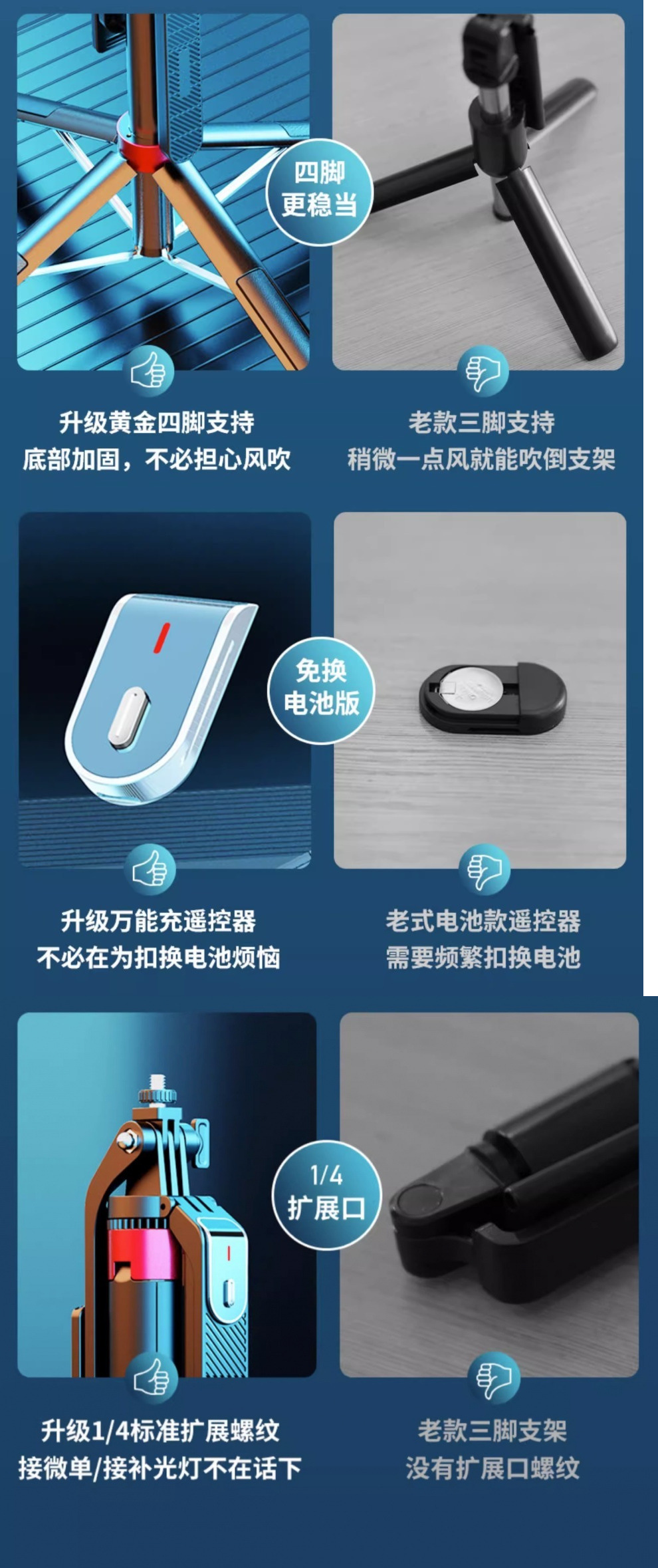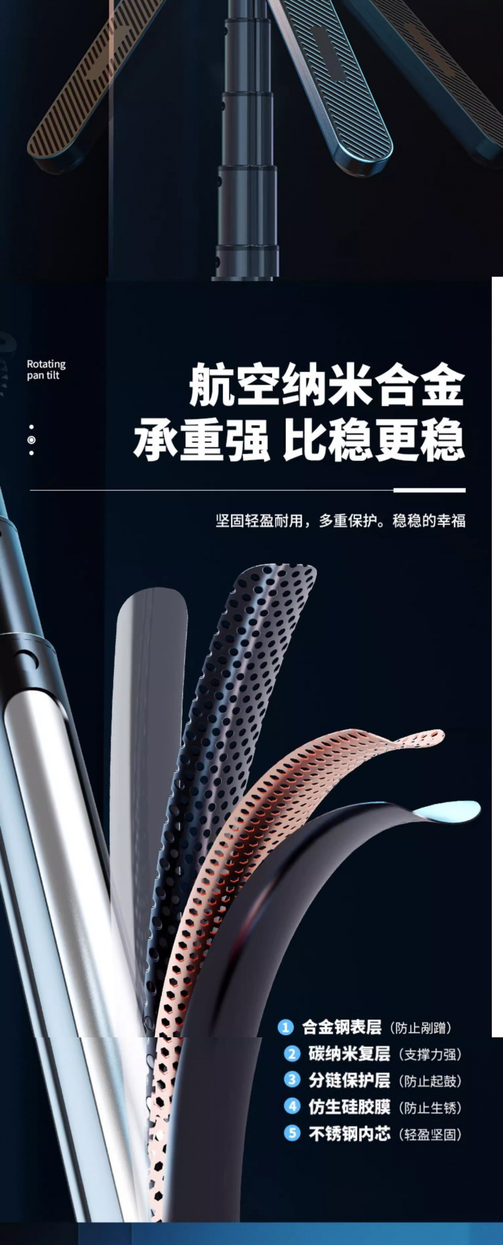 • [항공 알루미늄 합금] Gopro/카메라와 호환 가능 - 1.35m [4족 지지대] 합금 용골 - 이중 조명