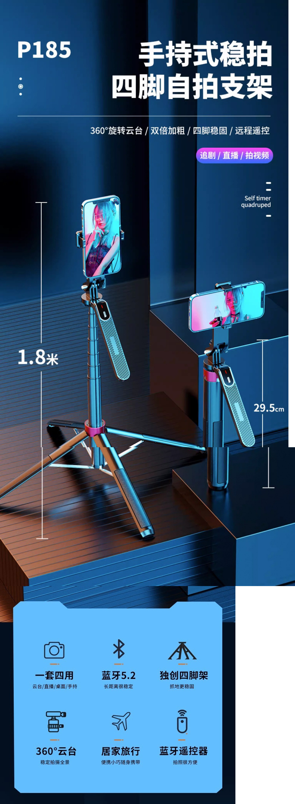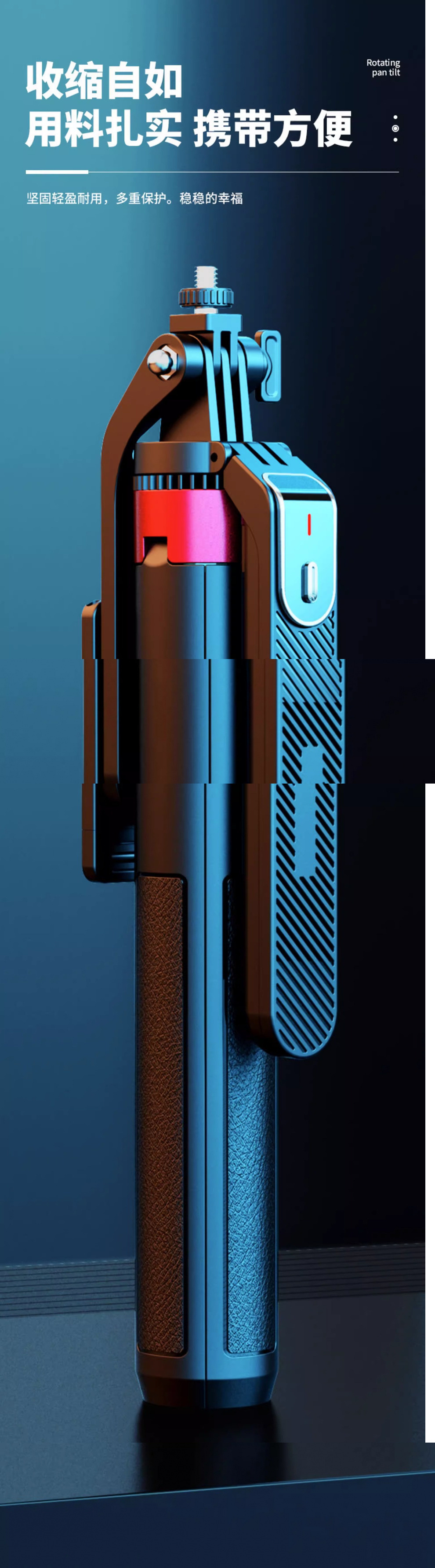 셀카 스틱, 쿼드 루포드. Mi 핸드 헬드 안티 쉐이크 PTZ 휴대 전화 라이브 쉐이크 음성 휴대용 바닥 랙
