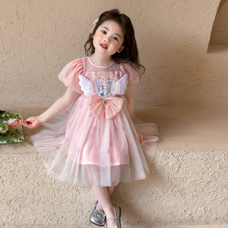 엘사 공주 원피스 소녀 여름 원피스 2025 새로운 어린이 엘사 원피스 세련된 아기 생일 원피스