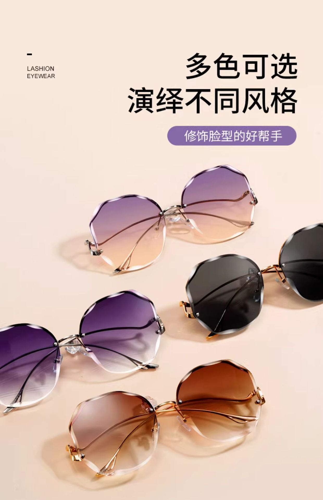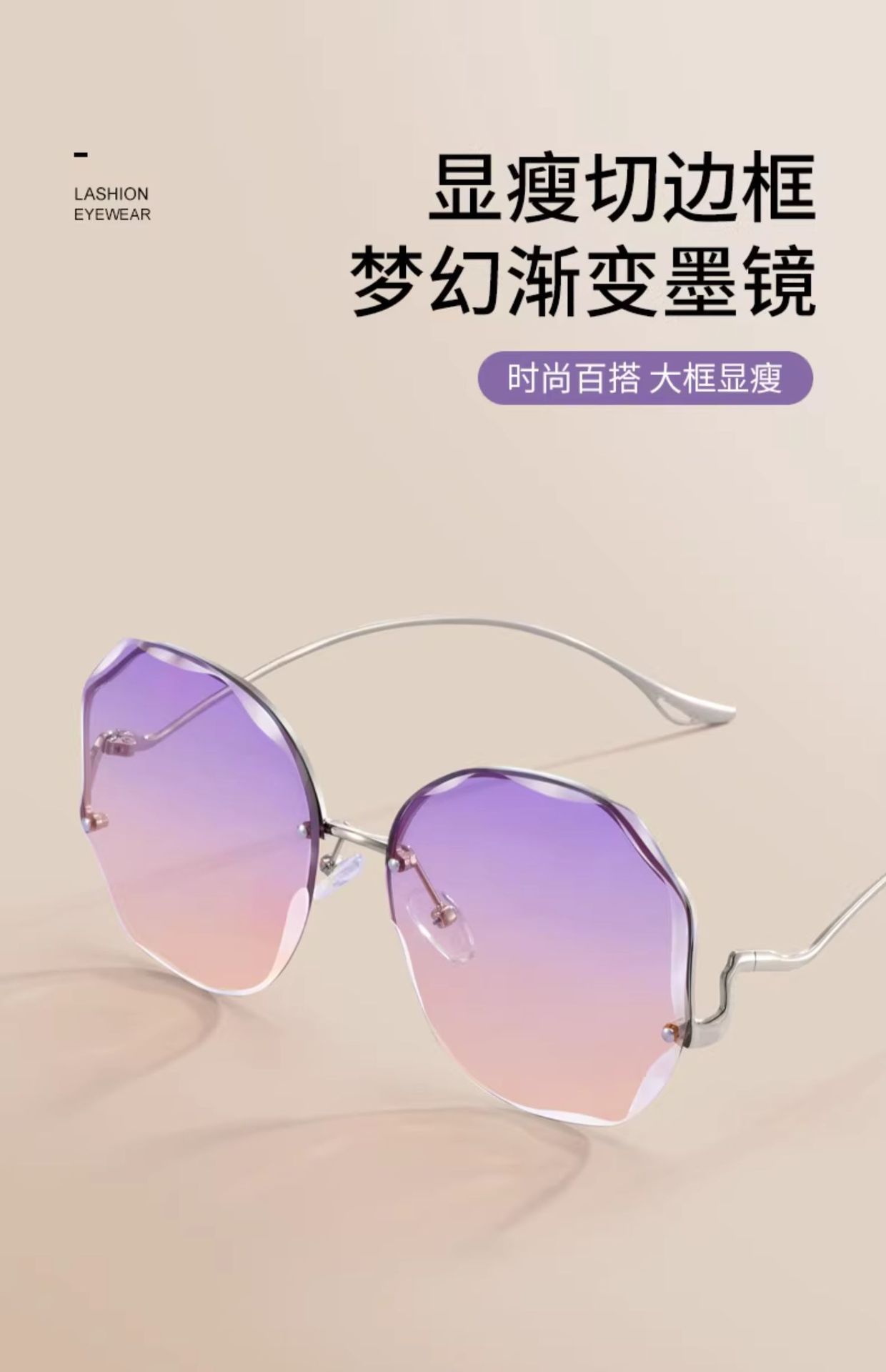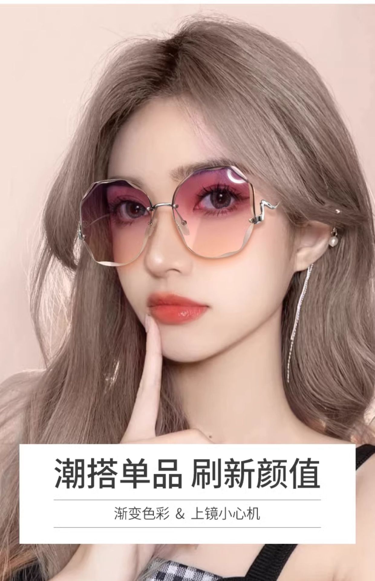 새로운 바다 영화 그라디언트 선글라스 여성 패션 유행 유럽과 미국의 프레임리스 선글라스 Anti-UV 스트리트 비트 안경스토어 가기