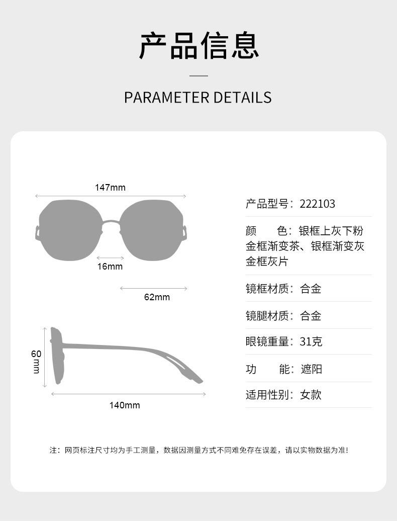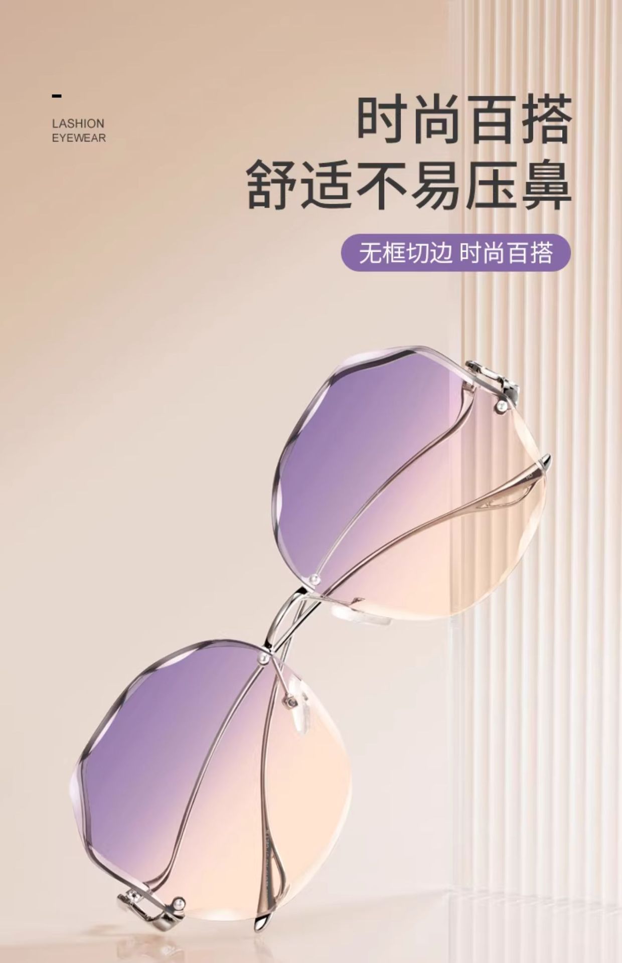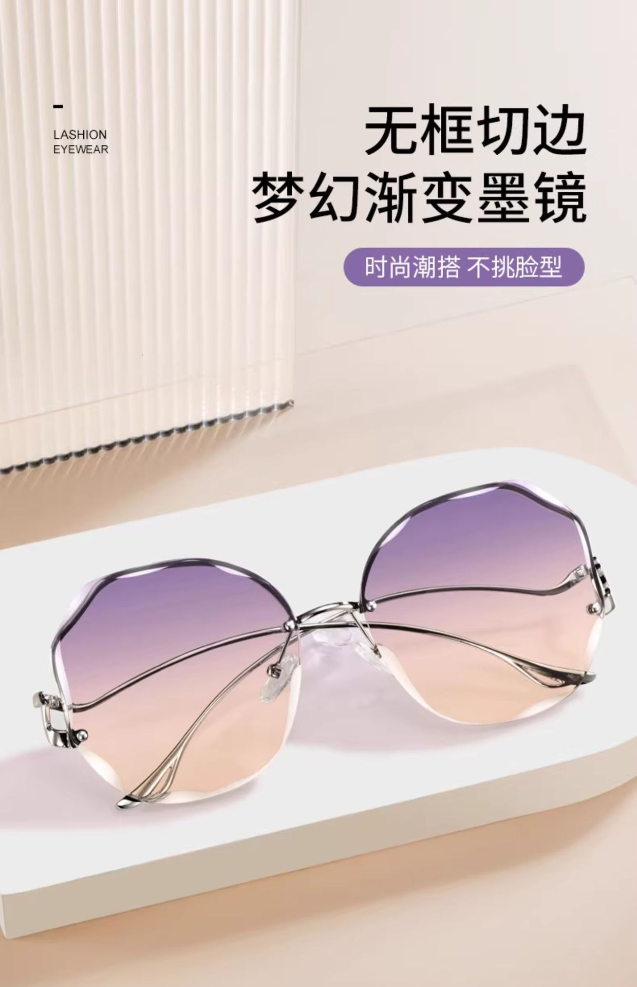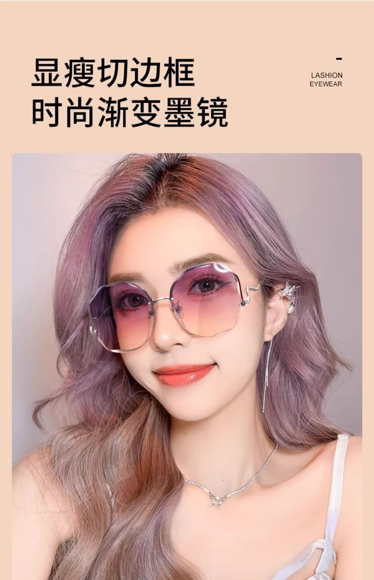 새로운 바다 영화 그라디언트 선글라스 여성 패션 유행 유럽과 미국의 프레임리스 선글라스 Anti-UV 스트리트 비트 안경스토어 가기