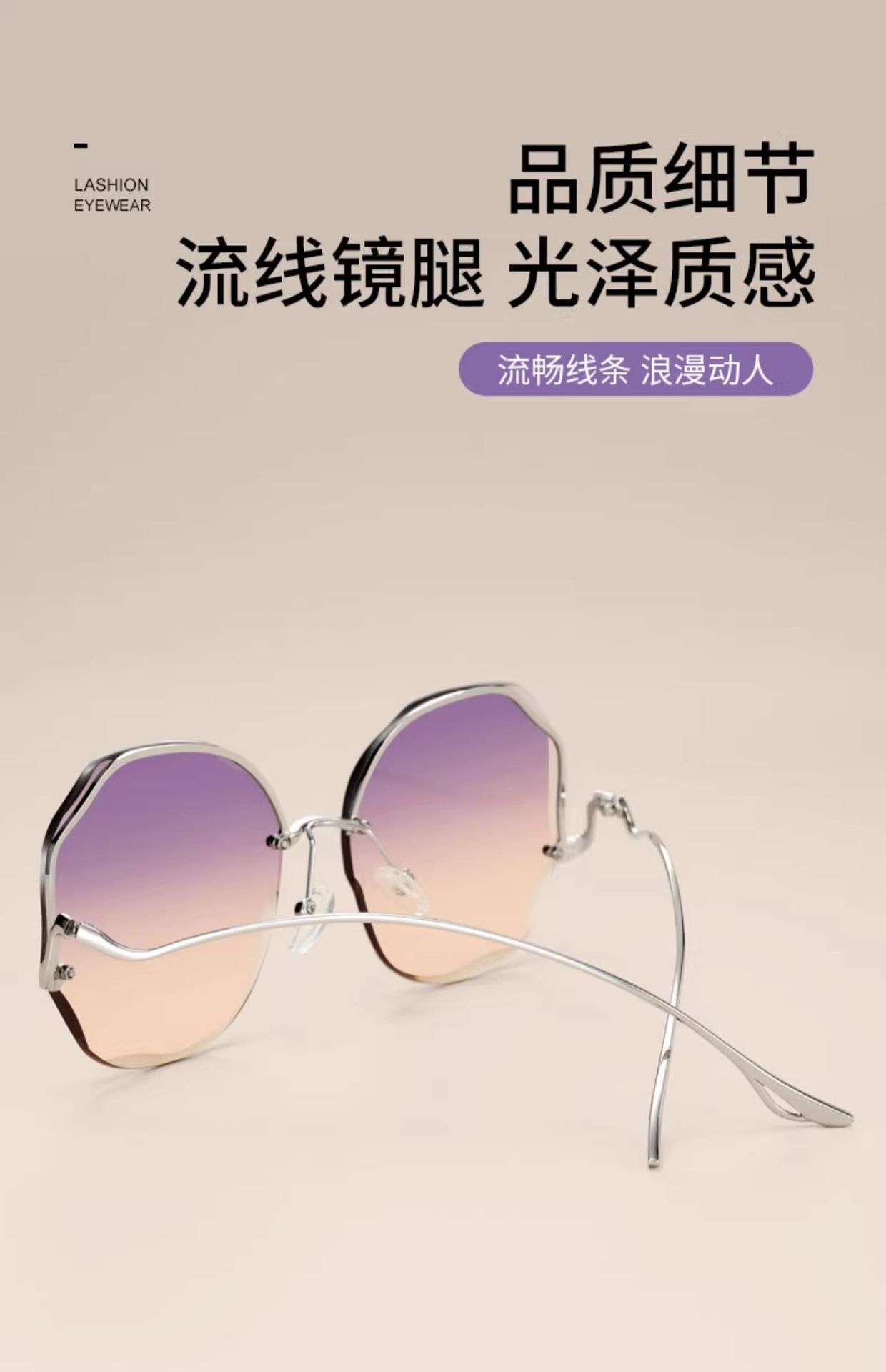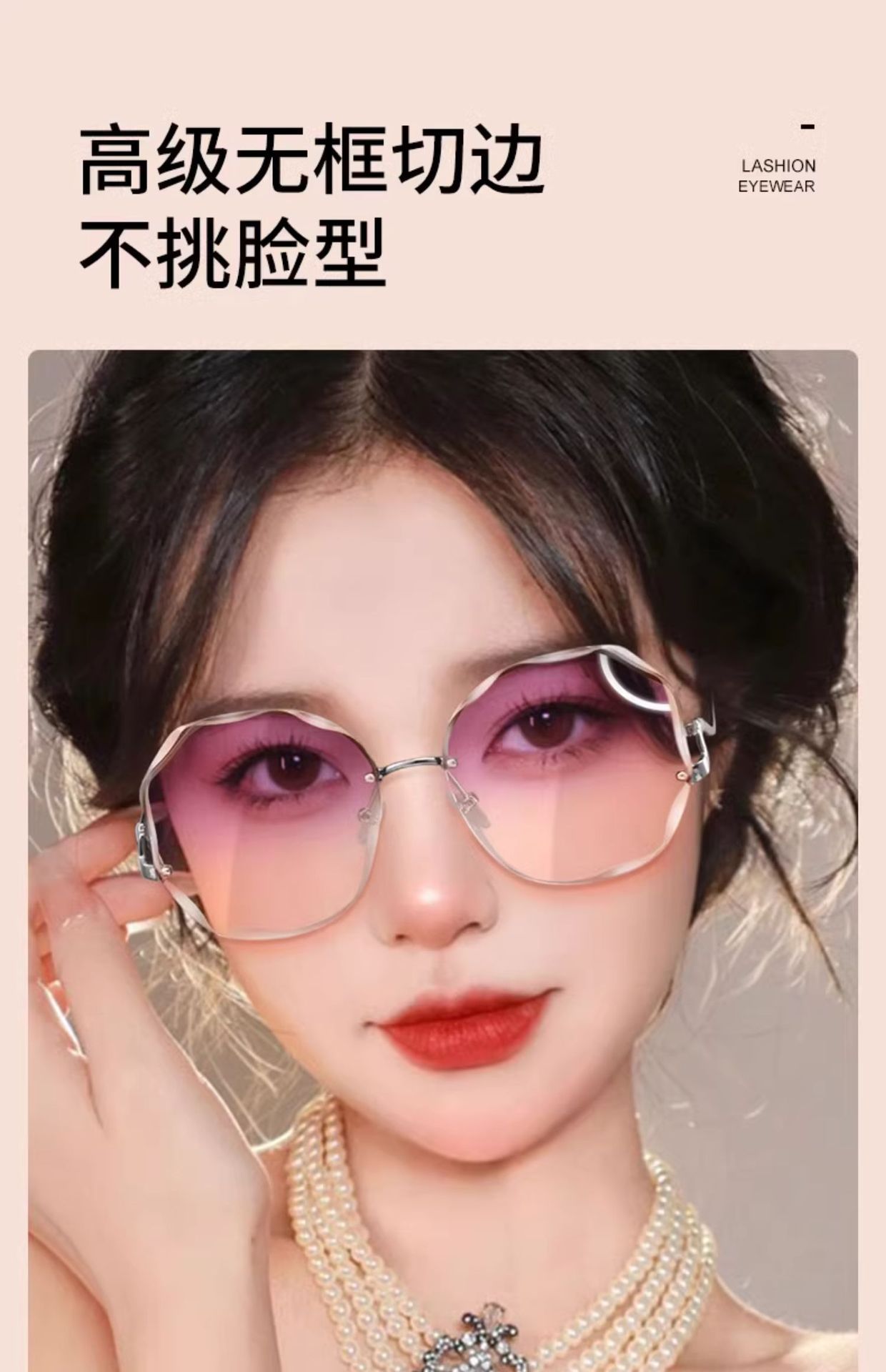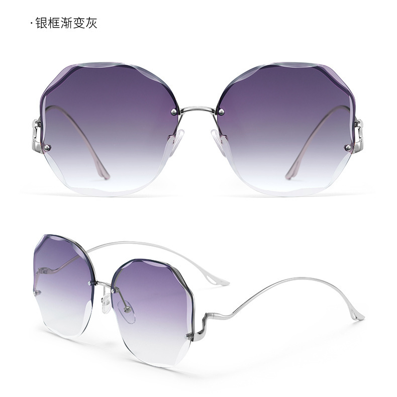 새로운 바다 영화 그라디언트 선글라스 여성 패션 유행 유럽과 미국의 프레임리스 선글라스 Anti-UV 스트리트 비트 안경