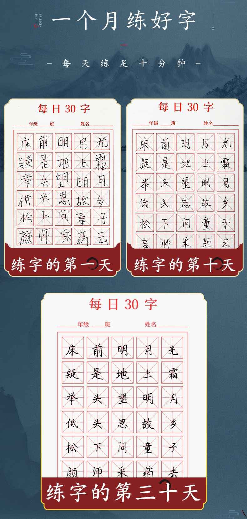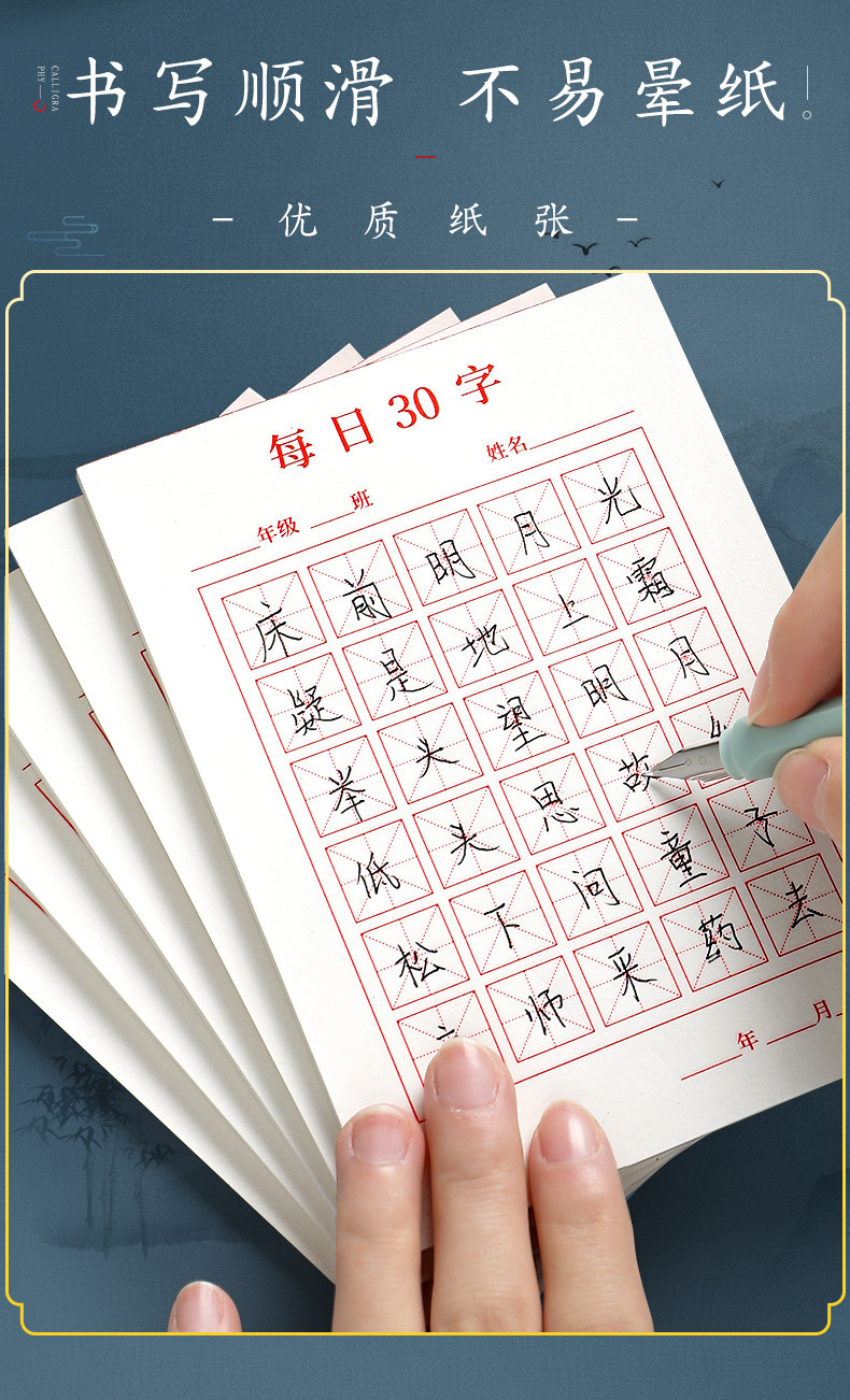 시진 매일 30 단어 연습 카피북 도매 초등학생 중국 서예 책 추적 붉은 연습 감압 동기 연습 카피 북