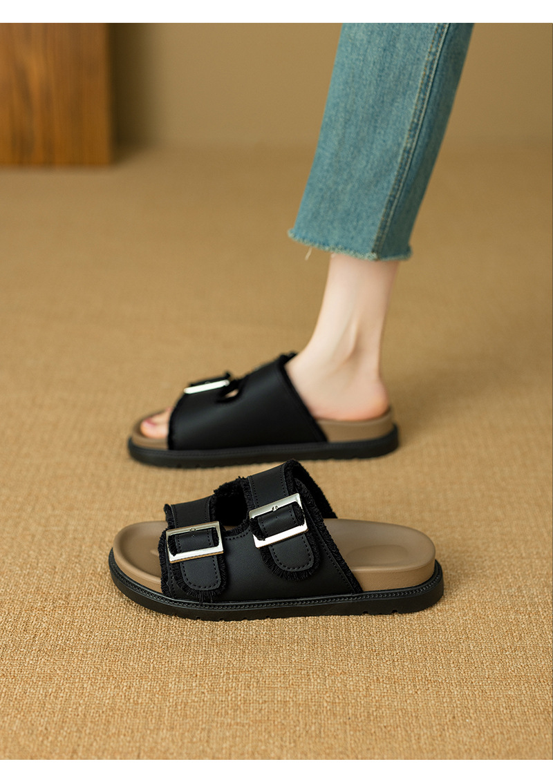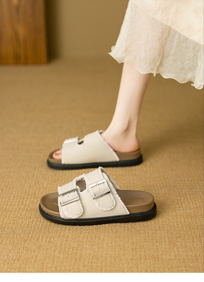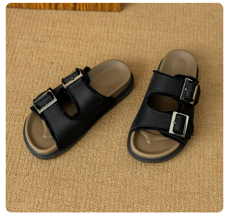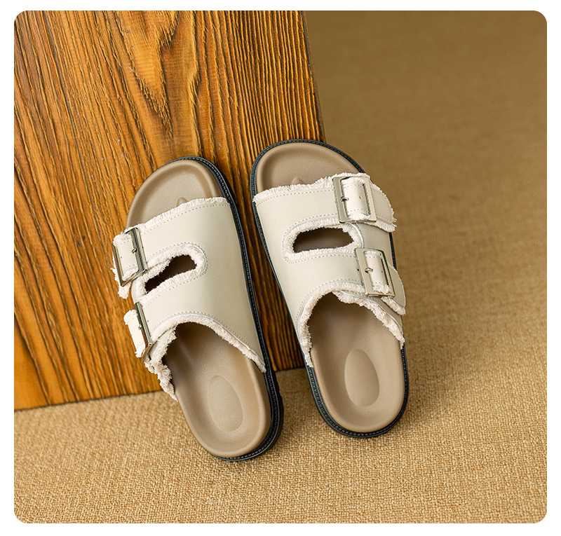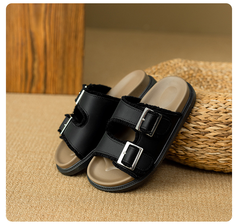 버켄본 슬리퍼 여성 2025 년 여름 새로운 캐주얼 플랫폼 의상 샌들과 슬리퍼 여성 두꺼운 바닥 벨트 버클 여성용 슬라이드