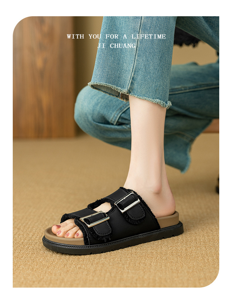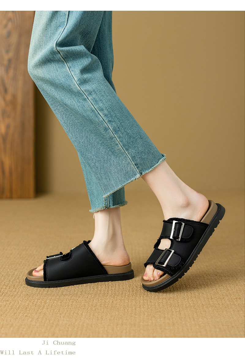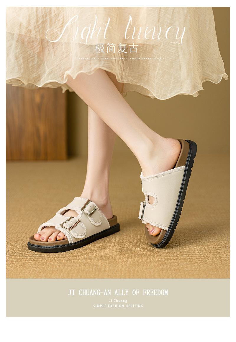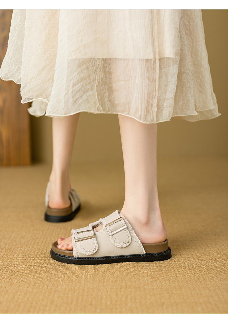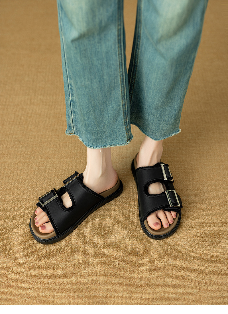 버켄본 슬리퍼 여성 2025 년 여름 새로운 캐주얼 플랫폼 의상 샌들과 슬리퍼 여성 두꺼운 바닥 벨트 버클 여성용 슬라이드