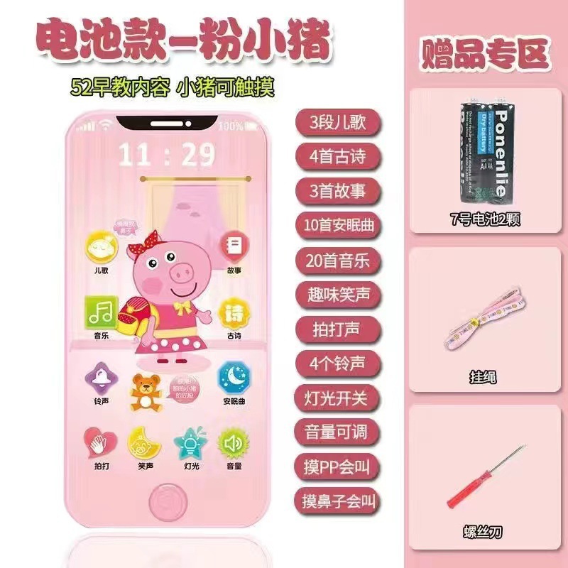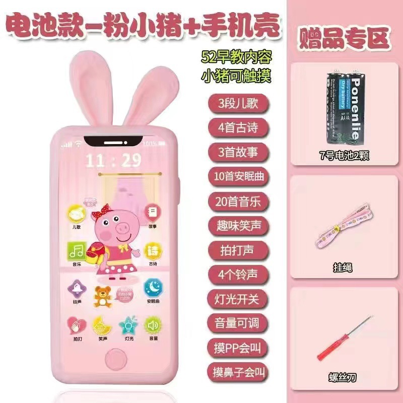 • [충전식 버전] 핑크돼지 5800 콘텐츠 + 휴대폰 케이스 + 유아교육용 시계 - 무료 마이크 끈