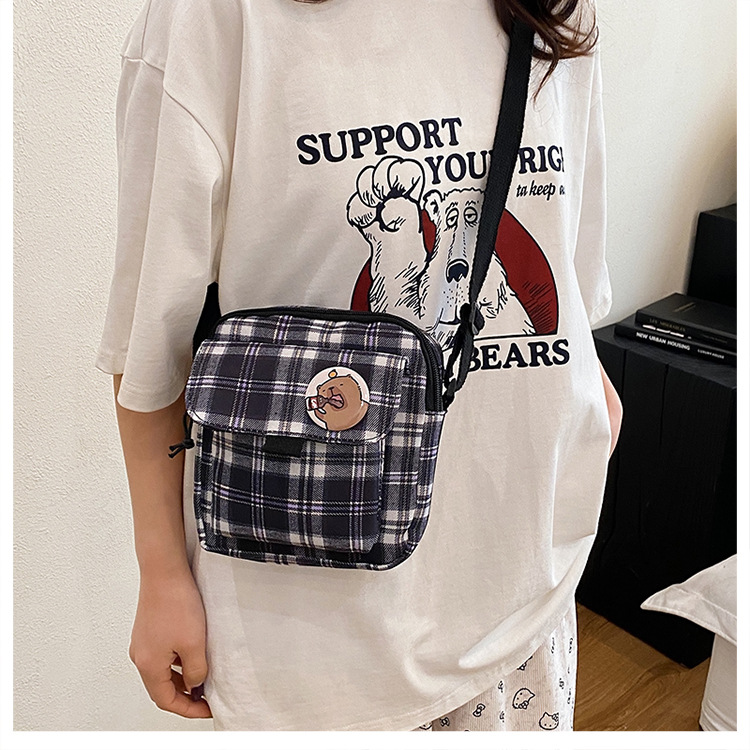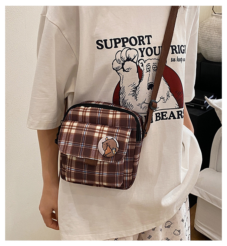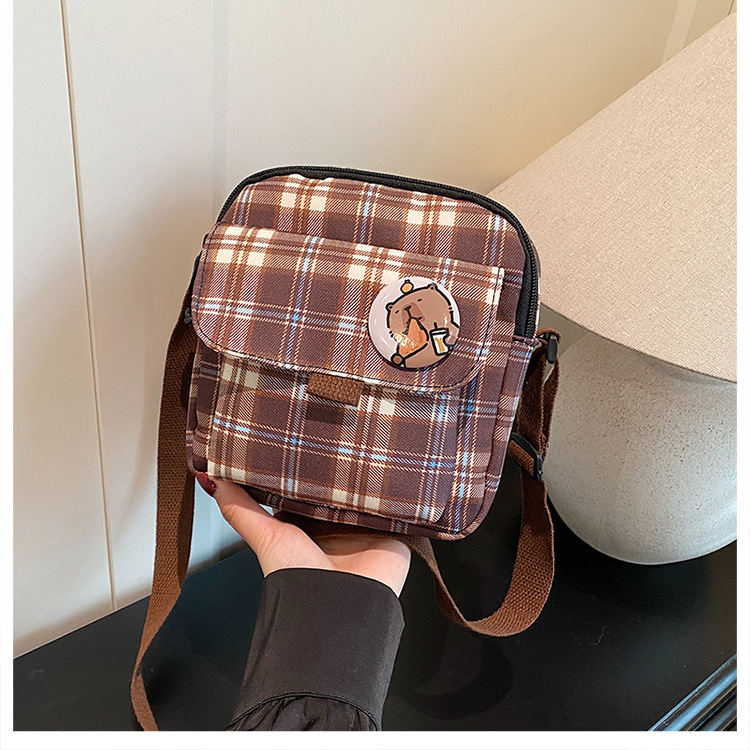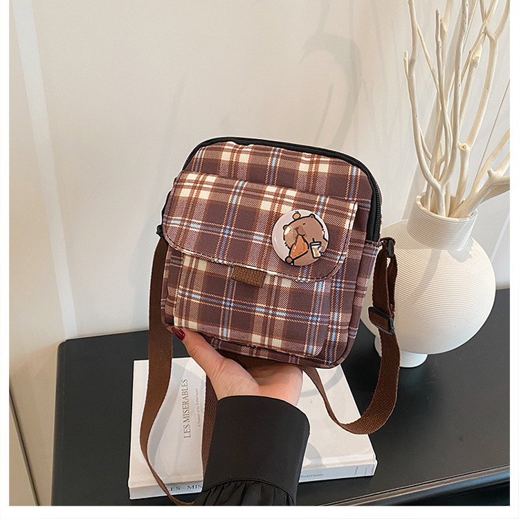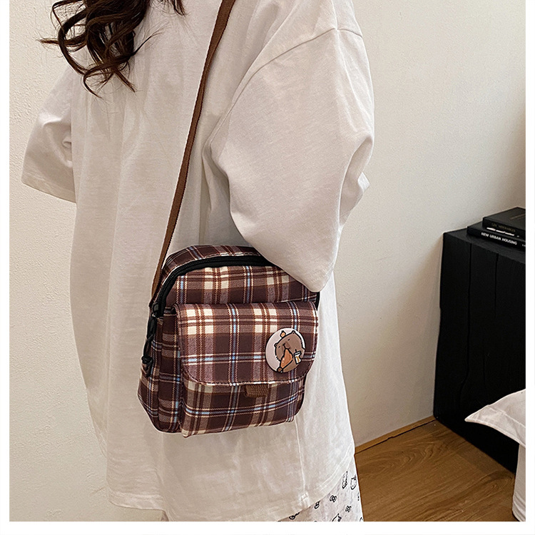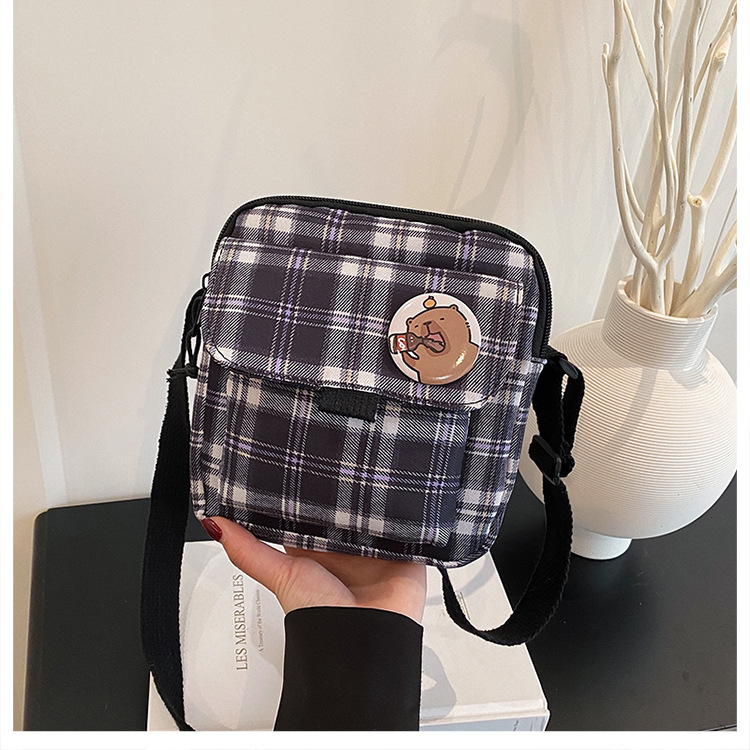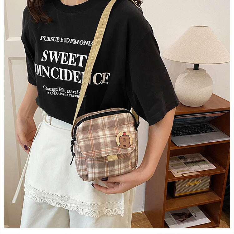 한국 스타일 어깨 가방 작은 신선한 학교 스타일 작은 가방 2025 새로운 유행 세련된 섬유 격자 무늬 소녀 크로스 백