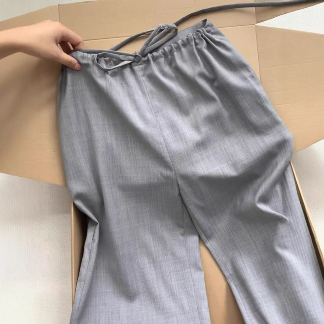 CHAO 클래스 추천! 회색 얇은 최악의 Elafite 허리 끈 스키니 와이드 레그 스트레이트 바지스토어 가기