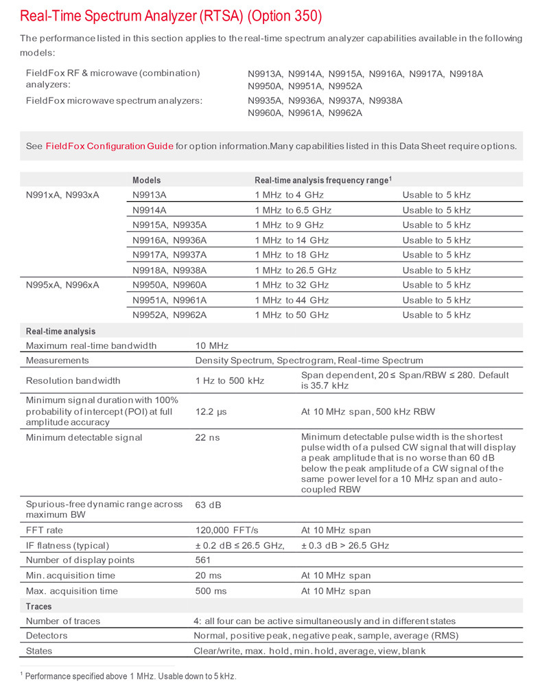 • N9914A-350(실시간 스펙트럼 옵션)