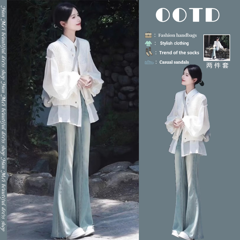 • 니트조끼+화이트셔츠+청바지 [3종세트]