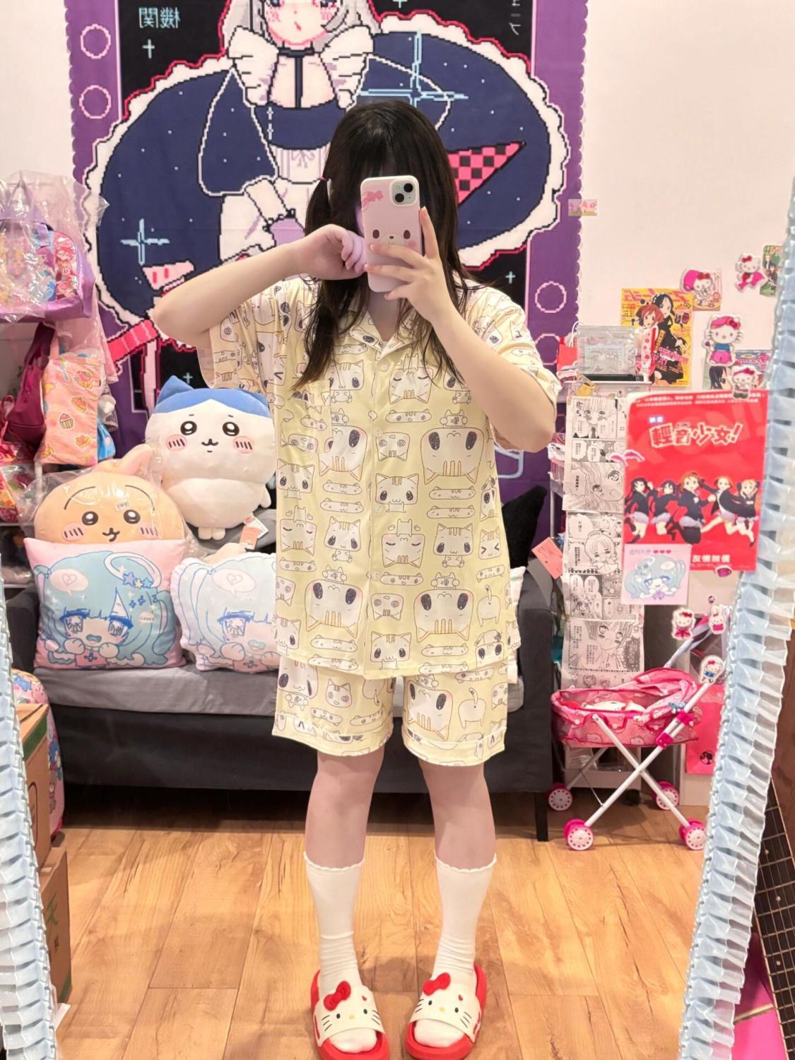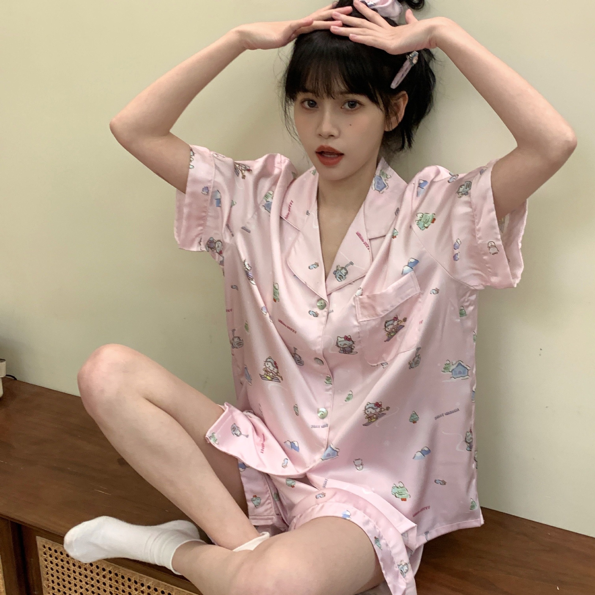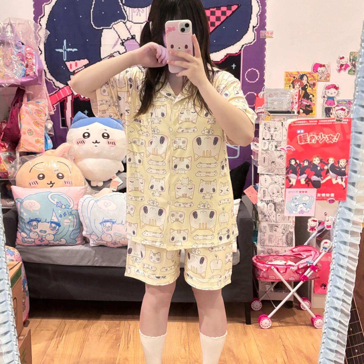 고대 초기 고양이 잠옷 여성의 여름 새로운 반팔 반바지 일본 스타일 만화 귀여운 학생 홈 의류 세트 외복스토어 가기