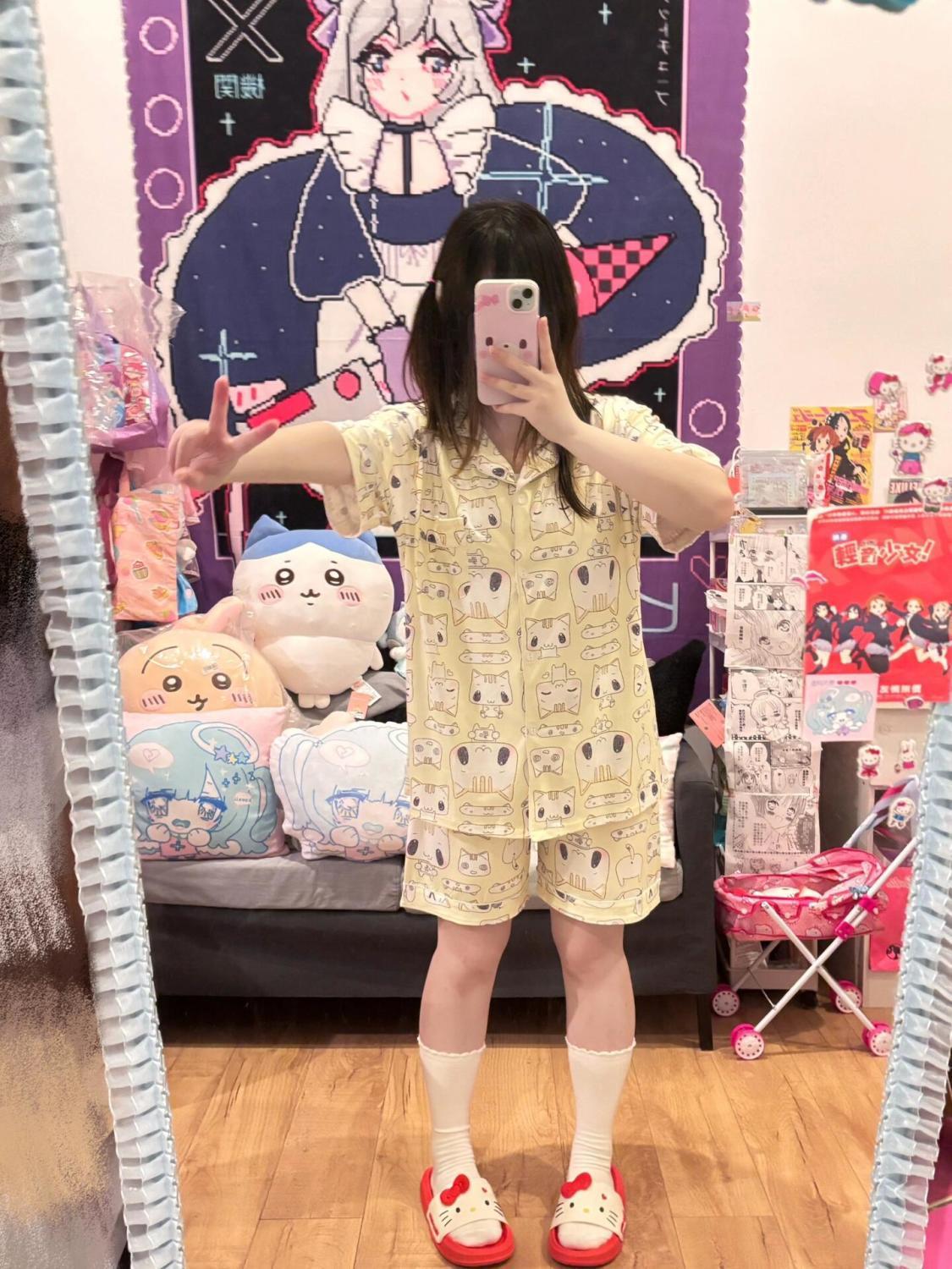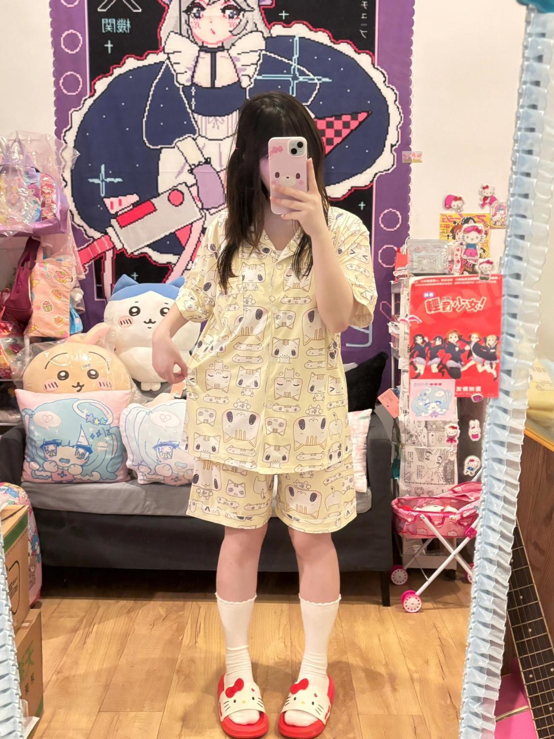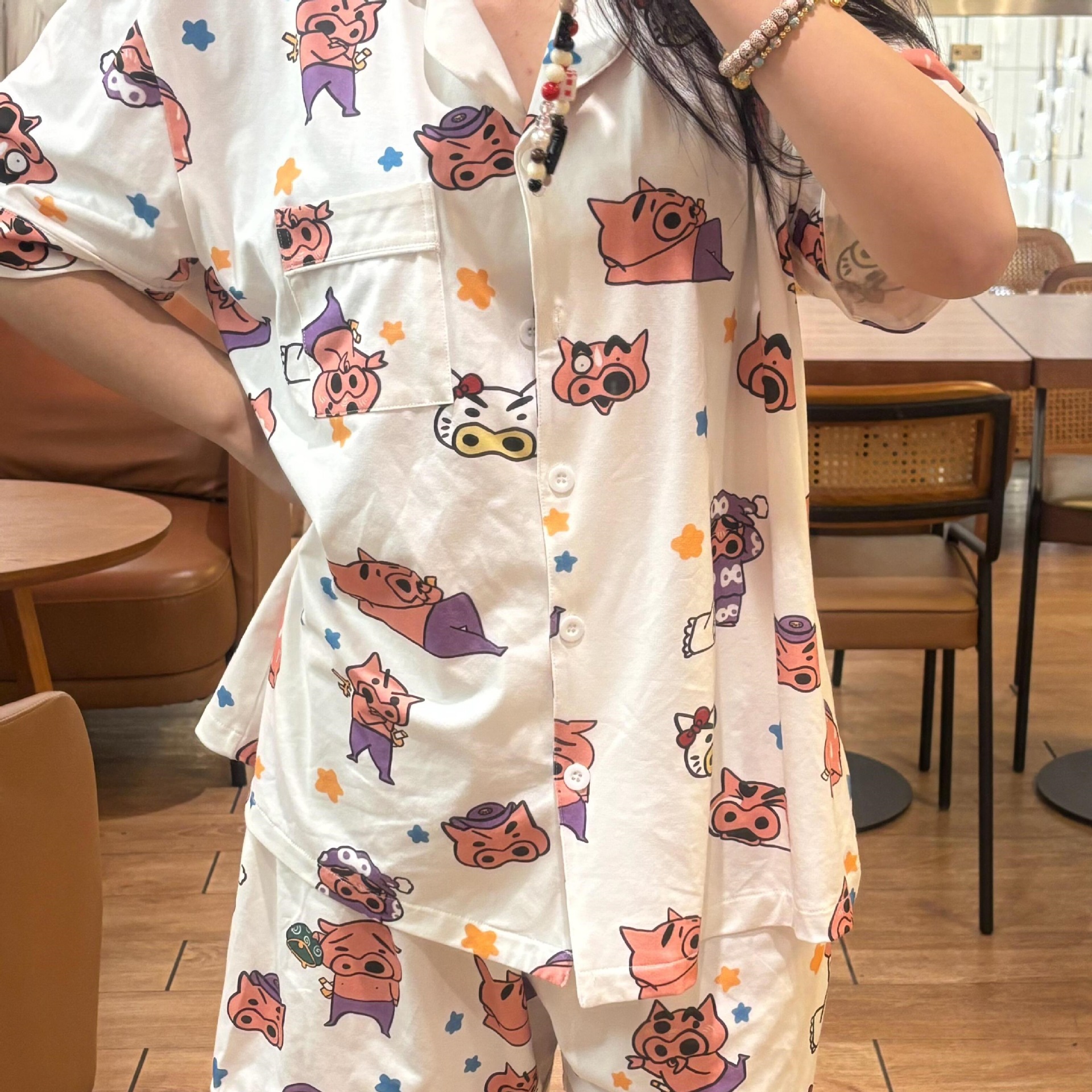 고대 초기 고양이 잠옷 여성의 여름 새로운 반팔 반바지 일본 스타일 만화 귀여운 학생 홈 의류 세트 외복스토어 가기