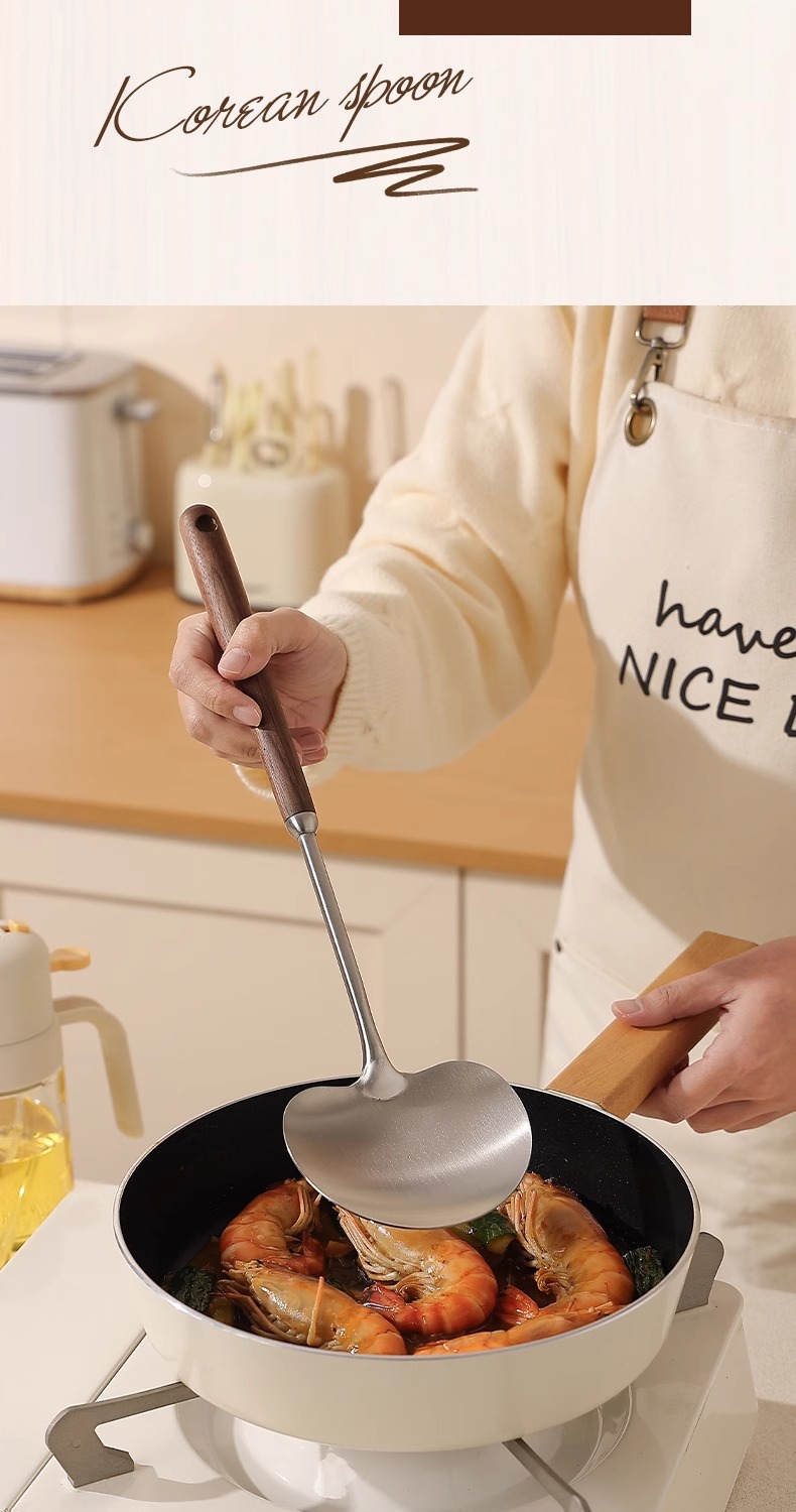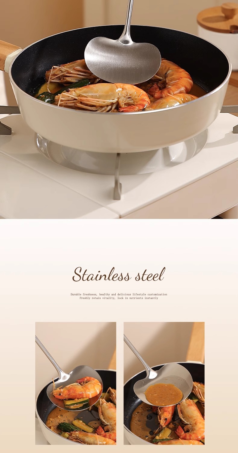안티 나무 냄비 삽 스테인레스 스틸 버섯 삽 긴 손잡이 볶음 숟가락 주방 요리 삽 볶음 수프 스푼 가정용 주방용품 삽