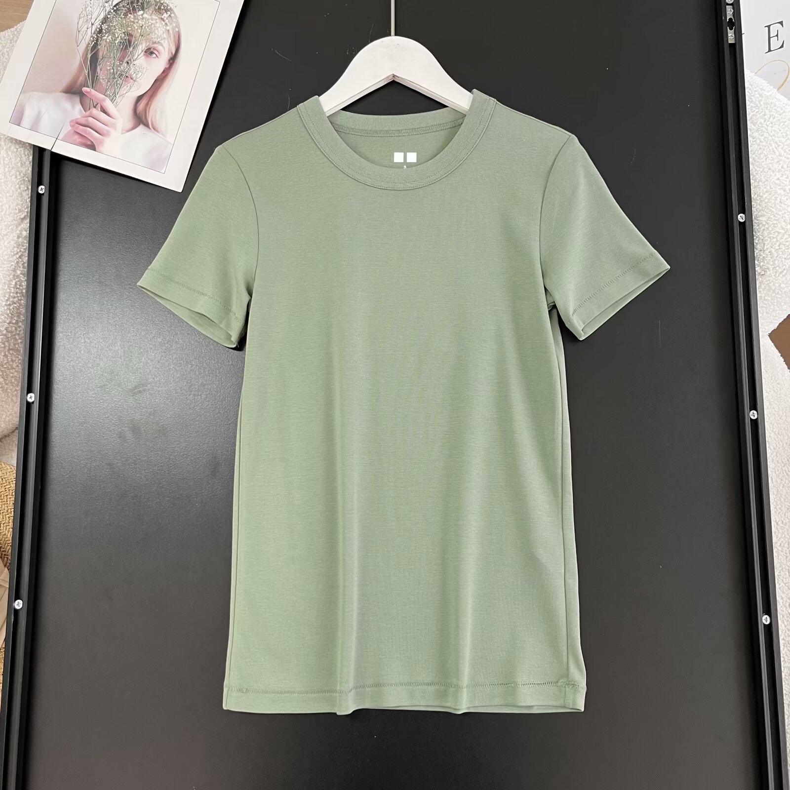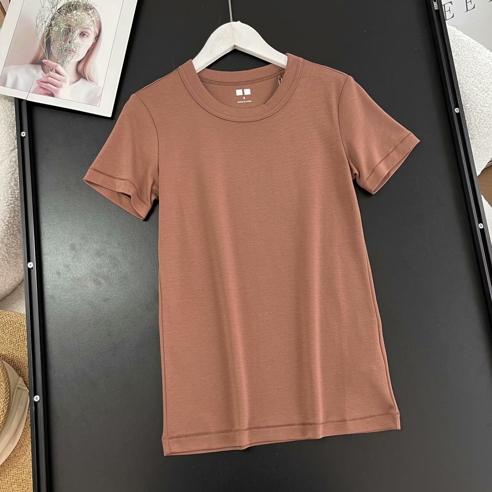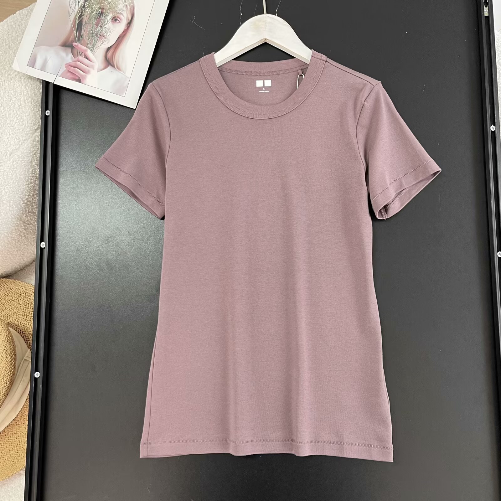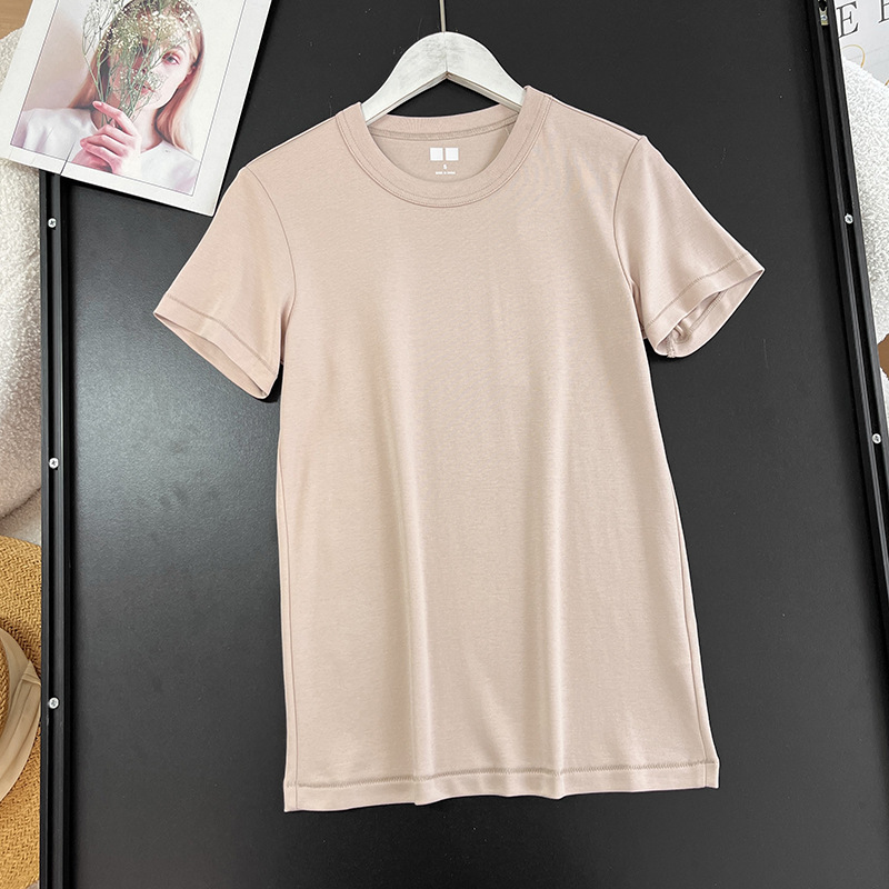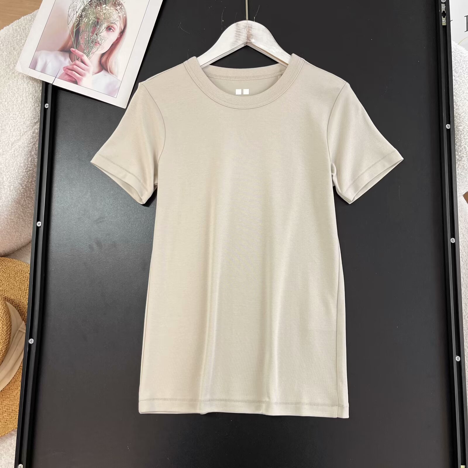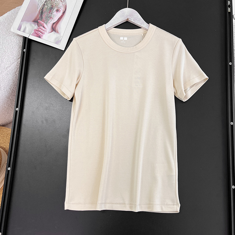 일본 여자 라운드 넥 티셔츠 짧은 소매 어깨 솔리드 컬러 화이트 T 슬림 핏 내베이스 셔츠 탑 25 봄/여름 474404