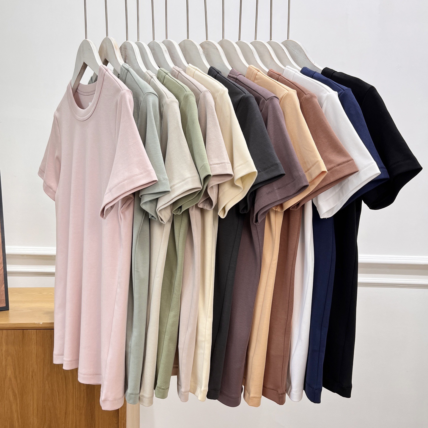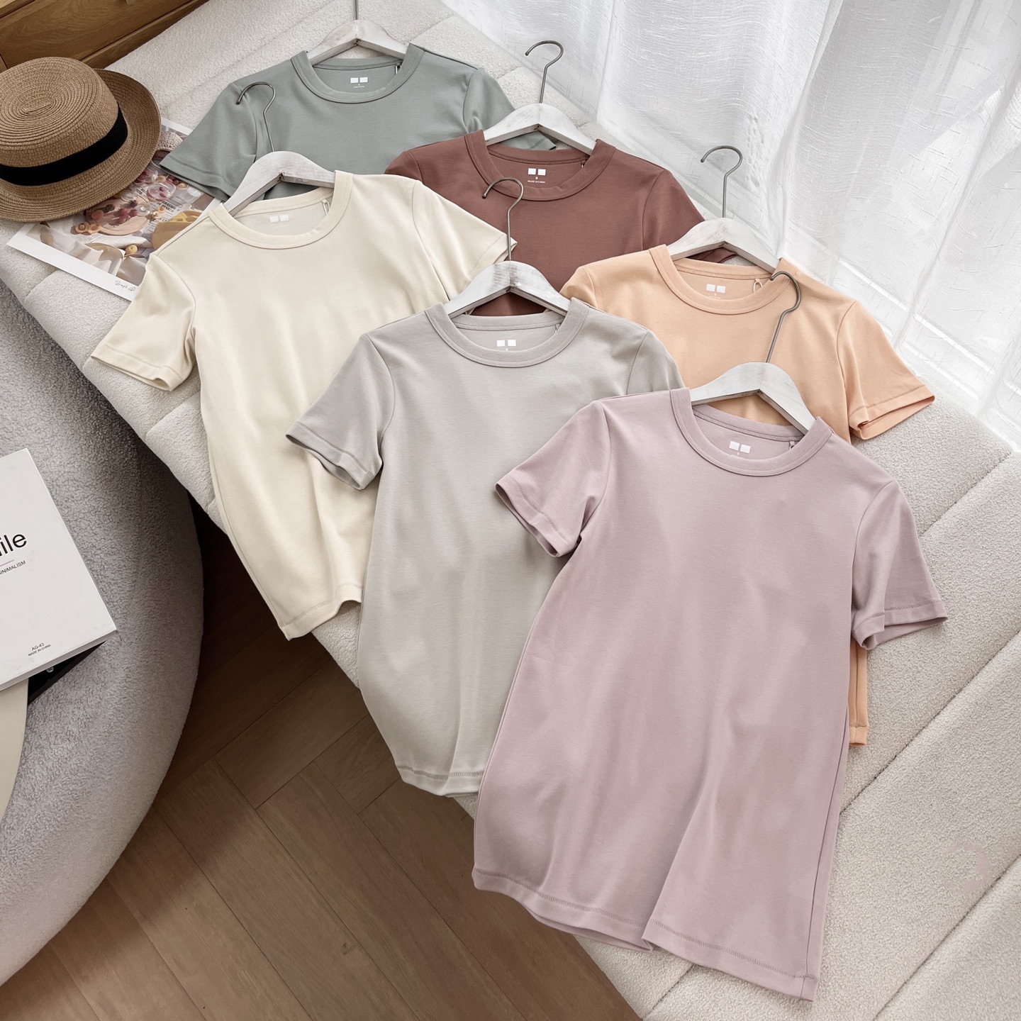 일본 여자 라운드 넥 티셔츠 짧은 소매 어깨 솔리드 컬러 화이트 T 슬림 핏 내베이스 셔츠 탑 25 봄/여름 474404스토어 가기
