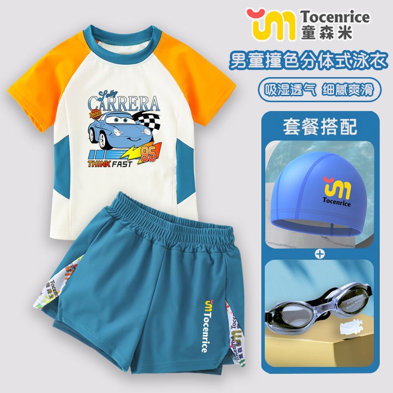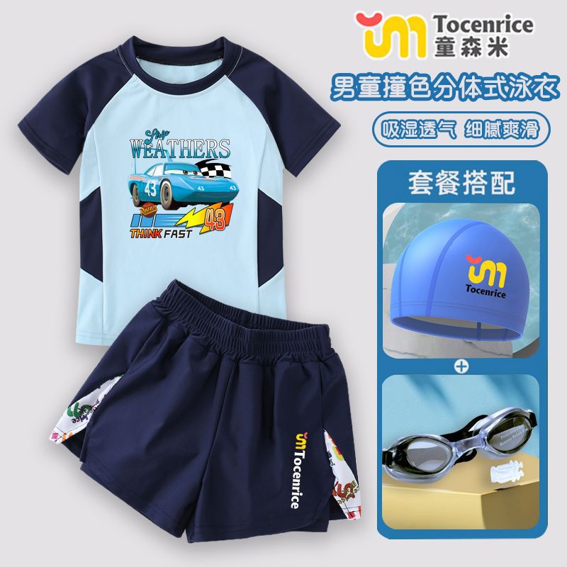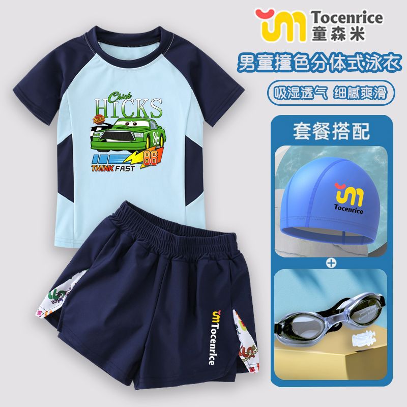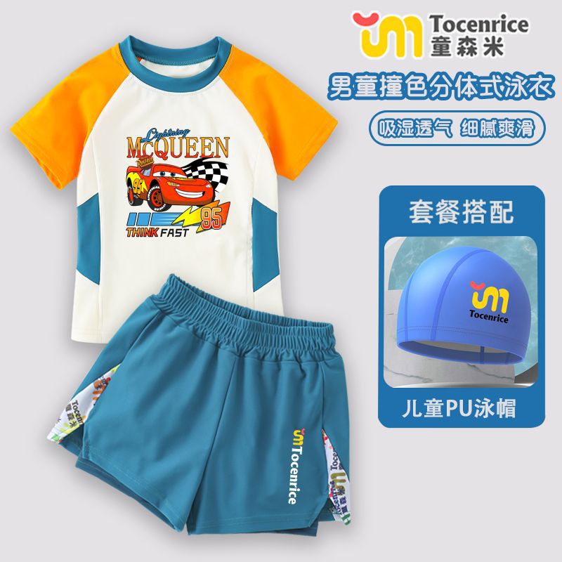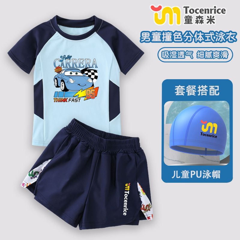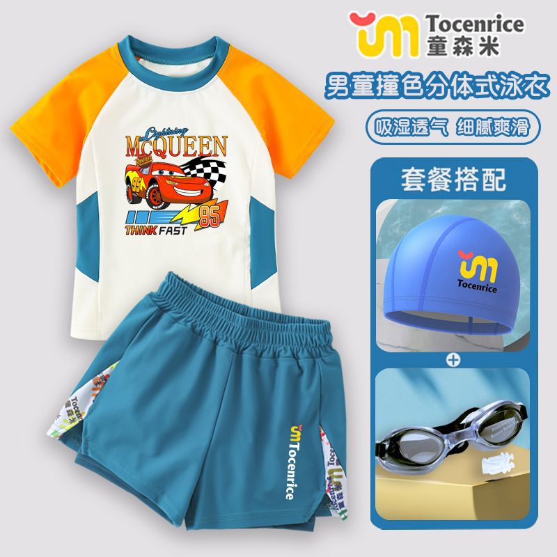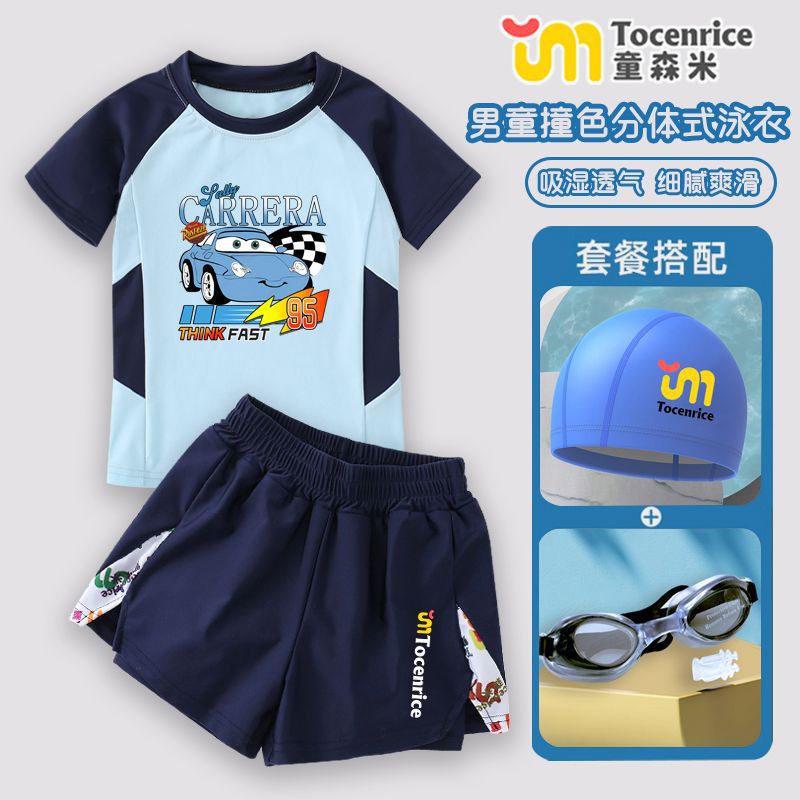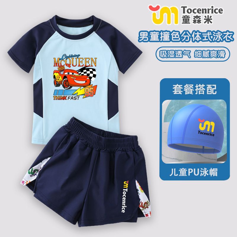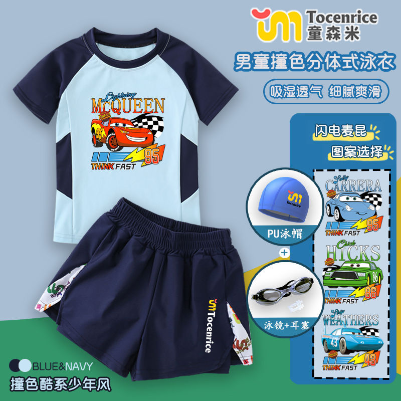 자동차 어린이 수영복 소년 스플릿 소년 수영복 2025 새로운 맥퀸 더블 레이어 수영 트렁크스토어 가기