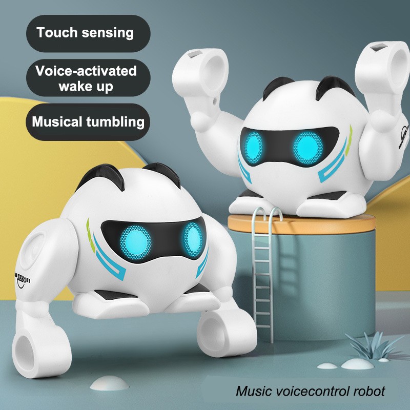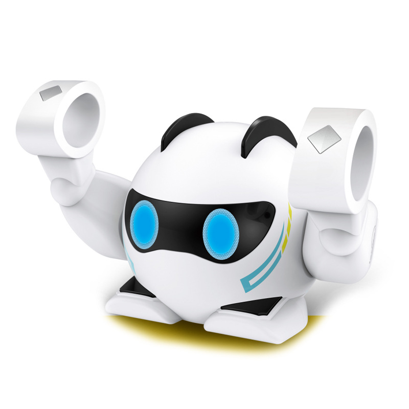 开机后,机器人会播放歌曲及翻滚身体。音乐停止后,对机器人鼓掌会继续播放歌曲。左手按住手臂,右手轻触手臂金属,机器人会发出美妙的音符声音,可与双人或多人一起触碰音符。