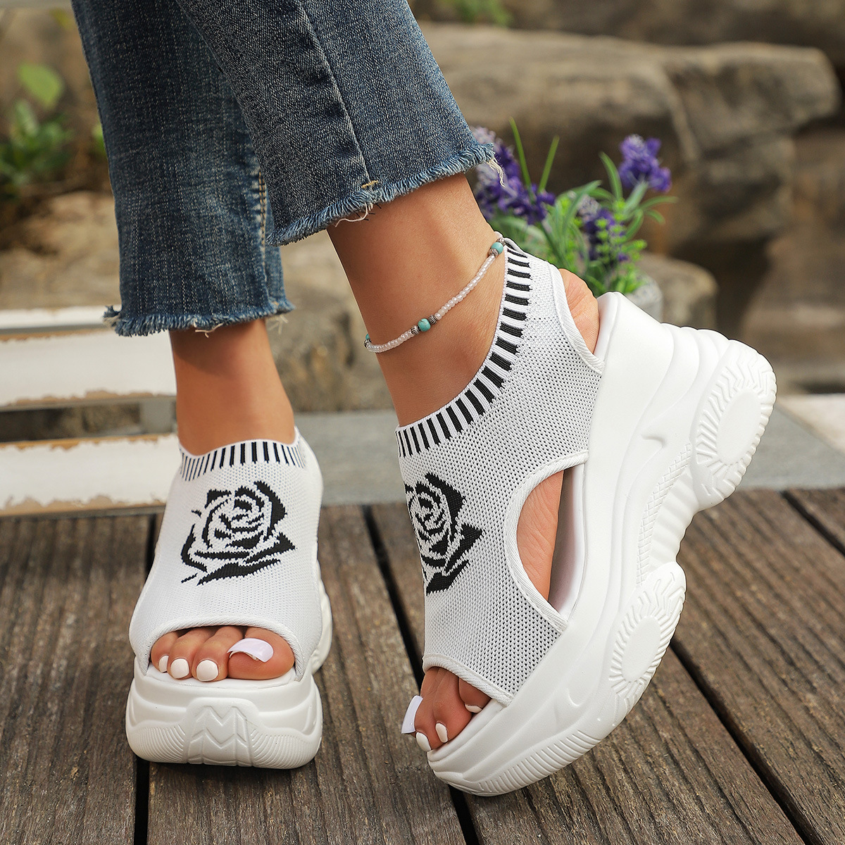 샌들 여성 인기 여름 신형 한국식 플랫폼 케이크 바닥 날기 짠 생선 입 오픈 발가락 플랫폼 스포츠 스타일 트렌디 한 캐주얼 샌들스토어 가기
