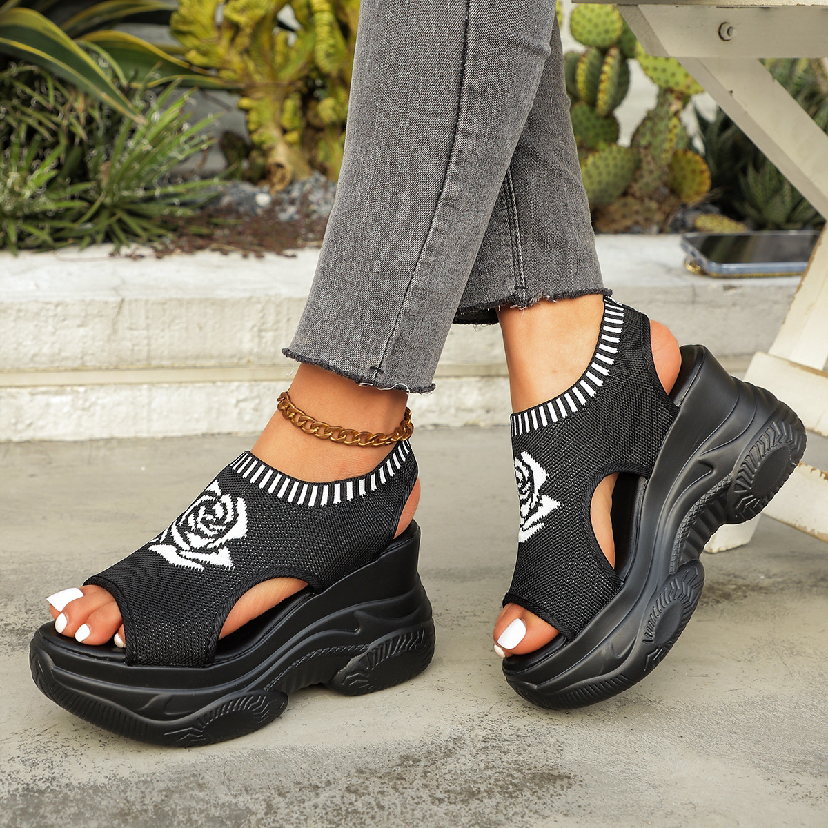 샌들 여성 인기 여름 신형 한국식 플랫폼 케이크 바닥 날기 짠 생선 입 오픈 발가락 플랫폼 스포츠 스타일 트렌디 한 캐주얼 샌들