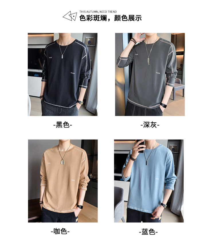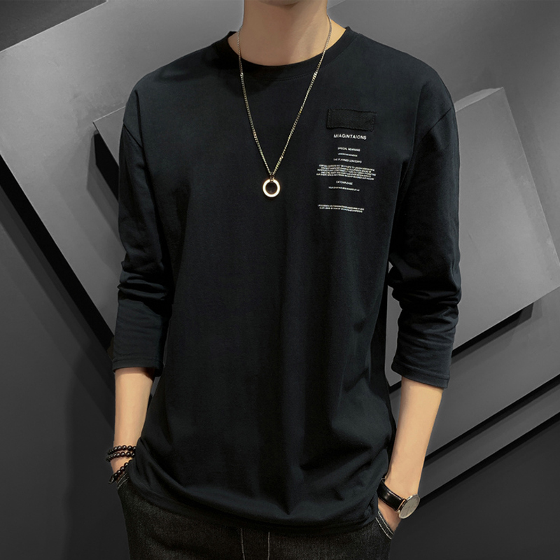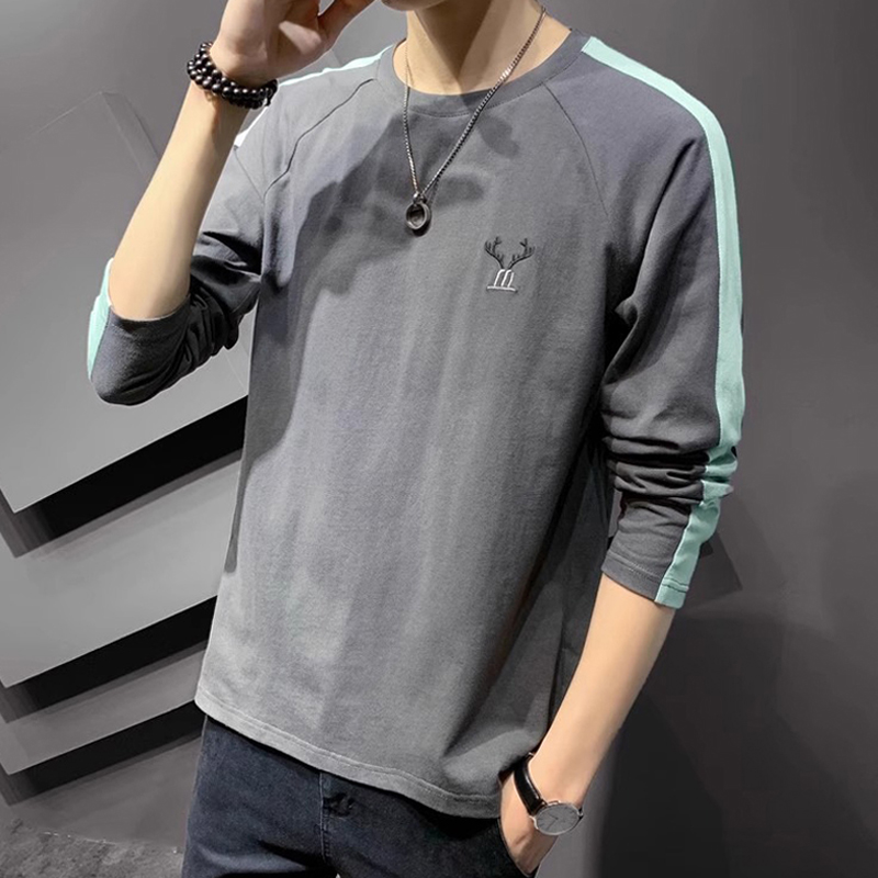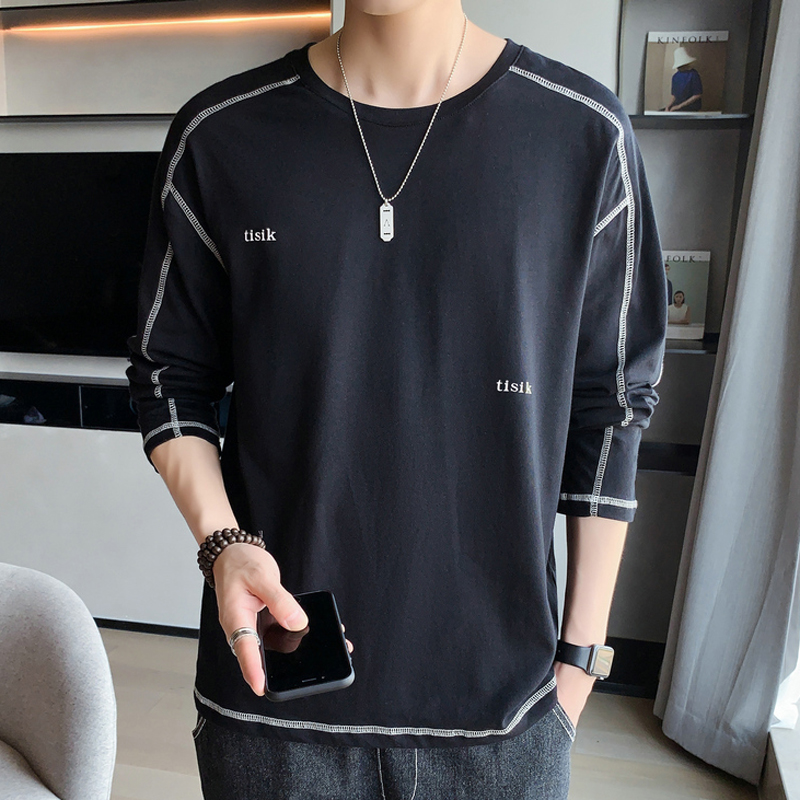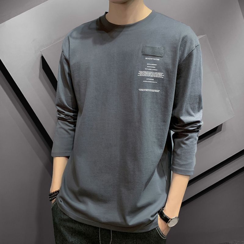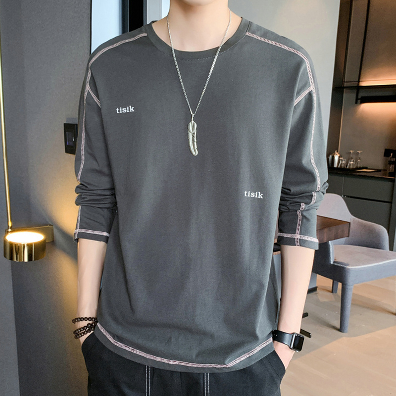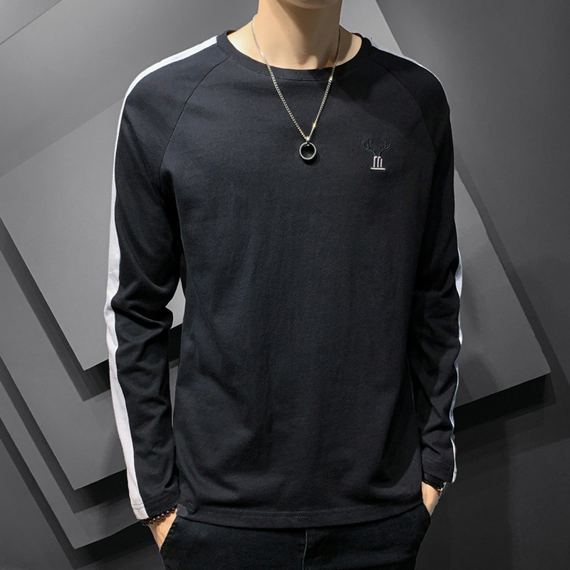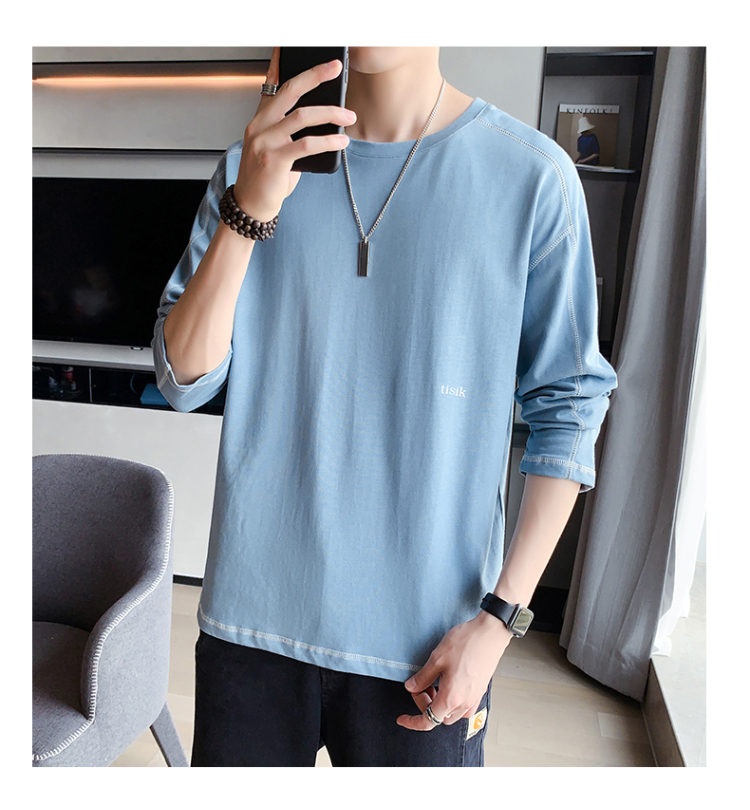 남자 긴팔 티셔츠 코튼 봄과 가을 새로운베이스 셔츠 유행 느슨한 올매치 라운드 넥 스웨터 캐주얼 탑스토어 가기
