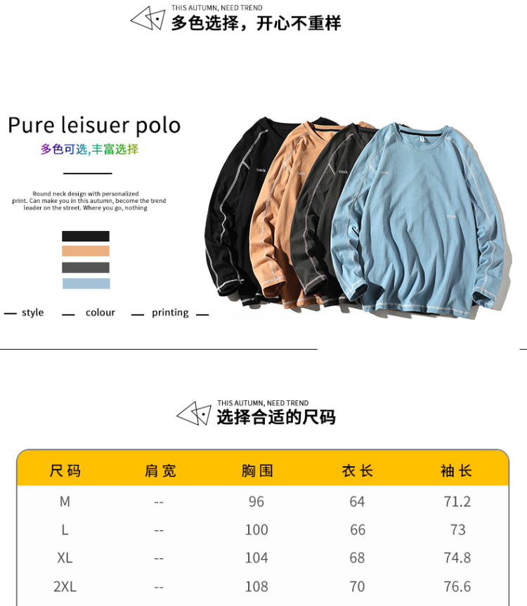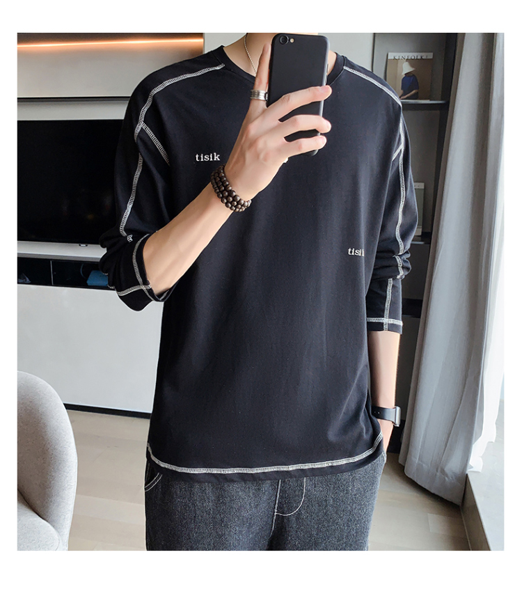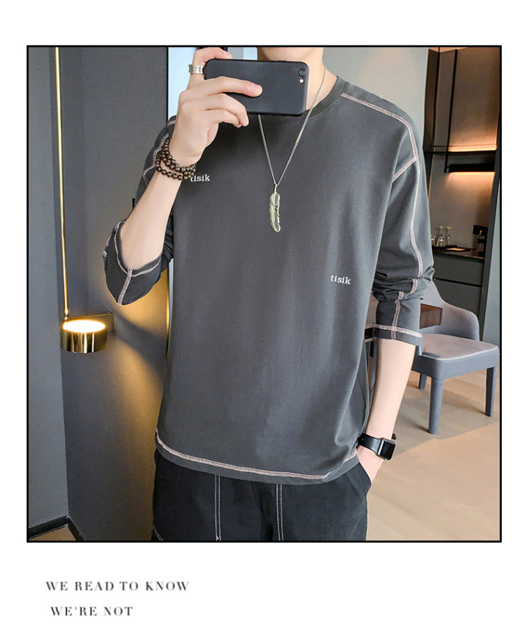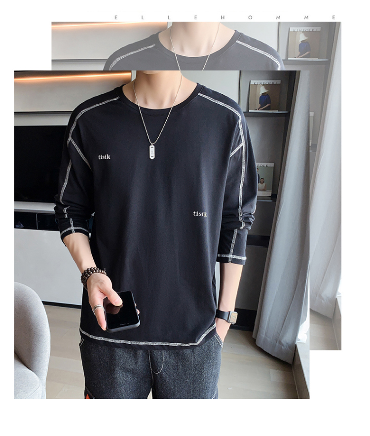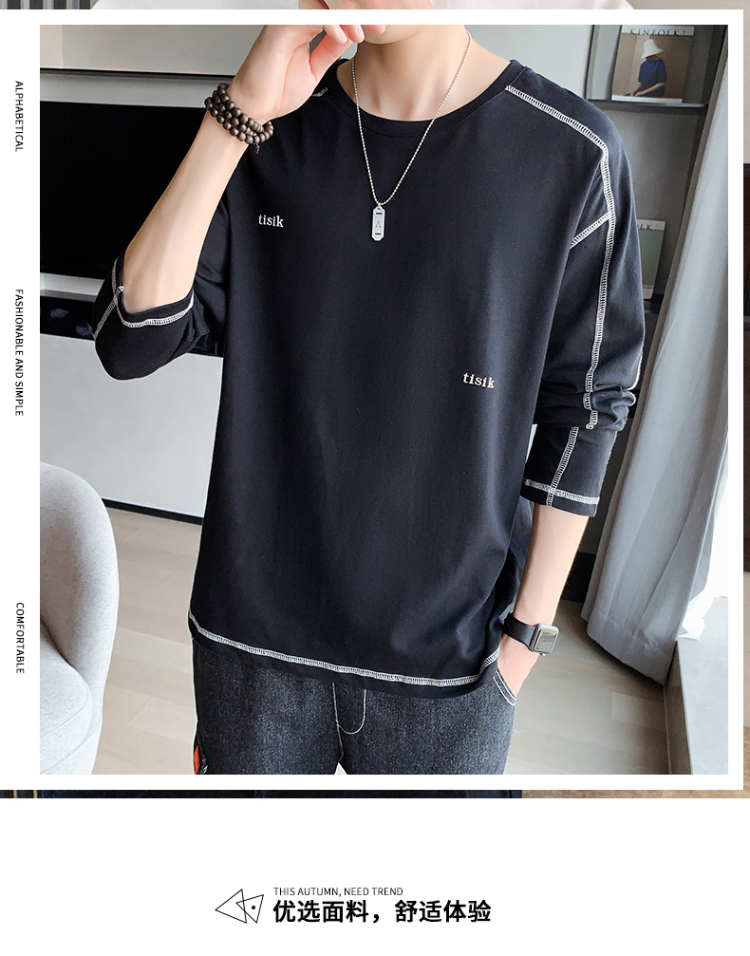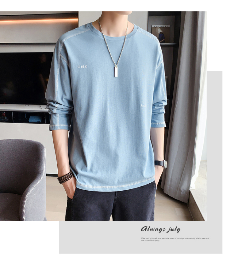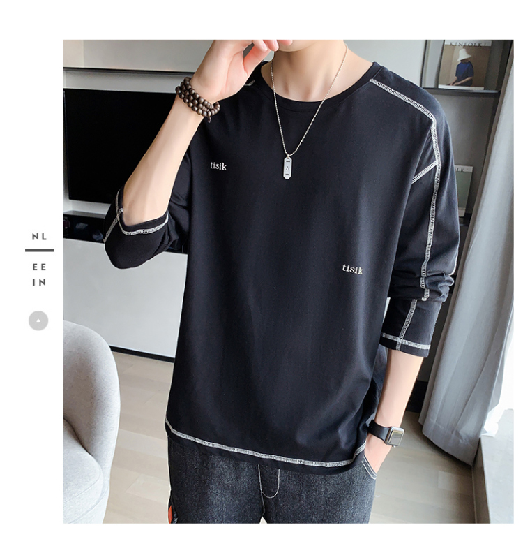남자 긴팔 티셔츠 코튼 봄과 가을 새로운베이스 셔츠 유행 느슨한 올매치 라운드 넥 스웨터 캐주얼 탑스토어 가기