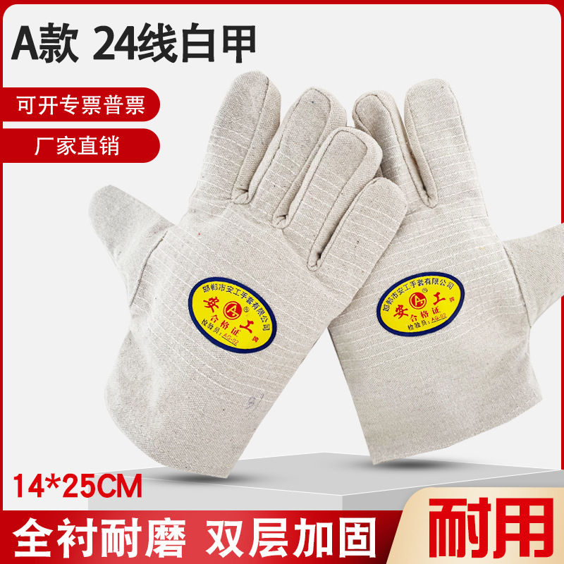 기계 및 전기 용접공을 위한 이중층 완전 안감 24라인 캔버스 장갑, 내마모성 및 두꺼운 작업 노동 보호 장비스토어 가기