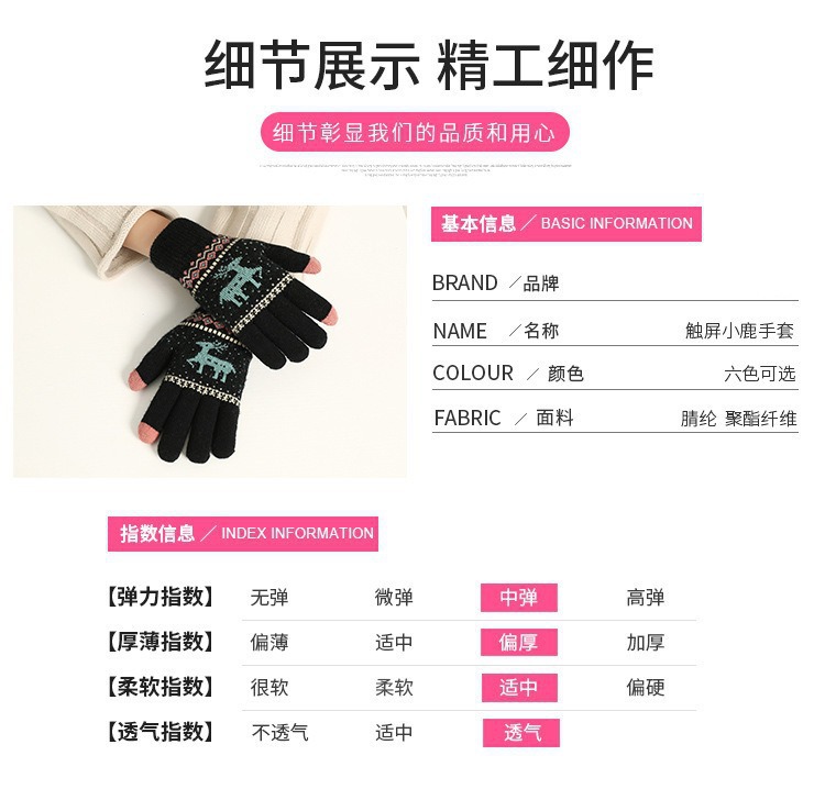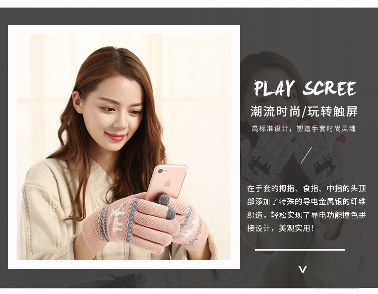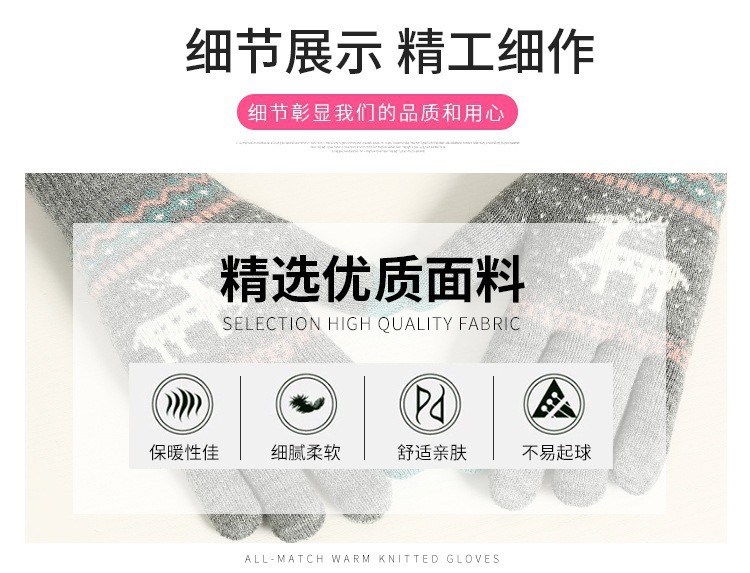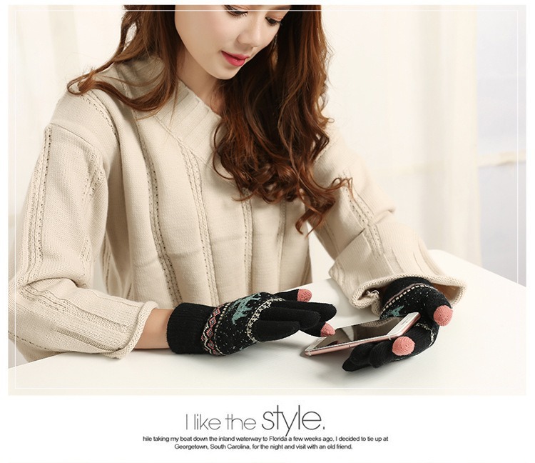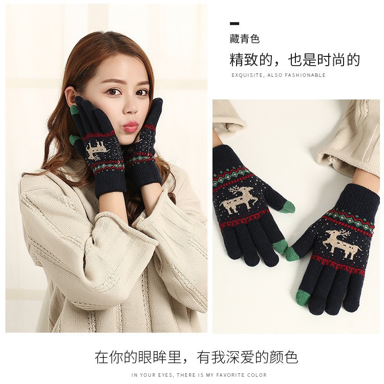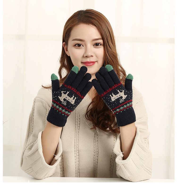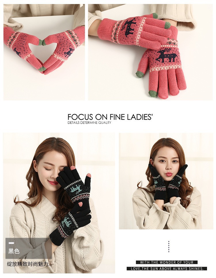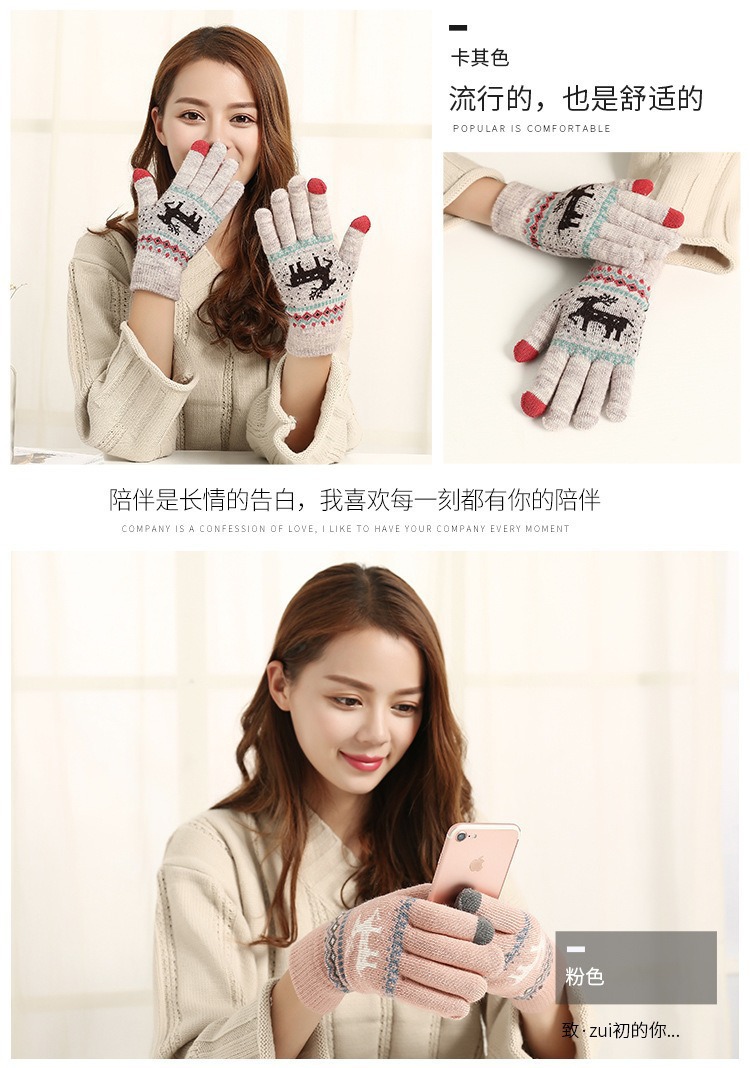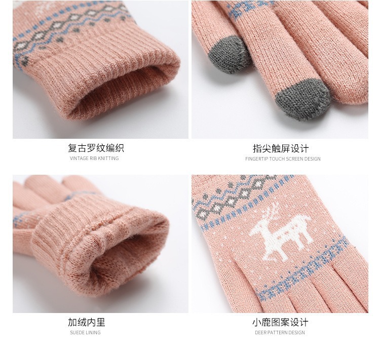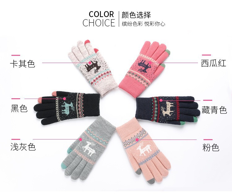 여성용 두꺼운 벨벳 사슴 장갑 겨울 니트 다섯 손가락 터치 스크린 양모 따뜻한 학생 사이클링 만화 귀여운 한국어 버전