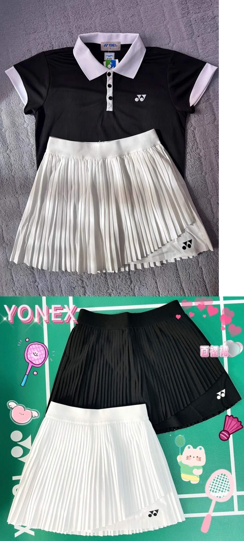 25 새로운 배드민턴 의류 세트 여름 빠른 건조 통기성 작은 비행 소매 여성의 짧은 치마 테니스 스포츠 피트니스 주름 치마