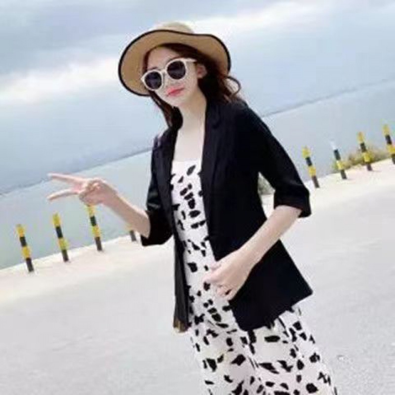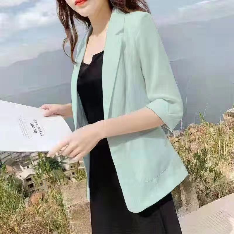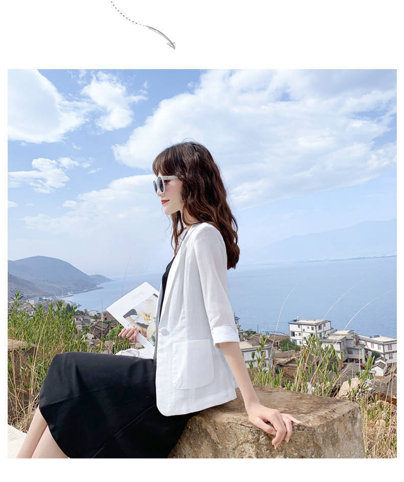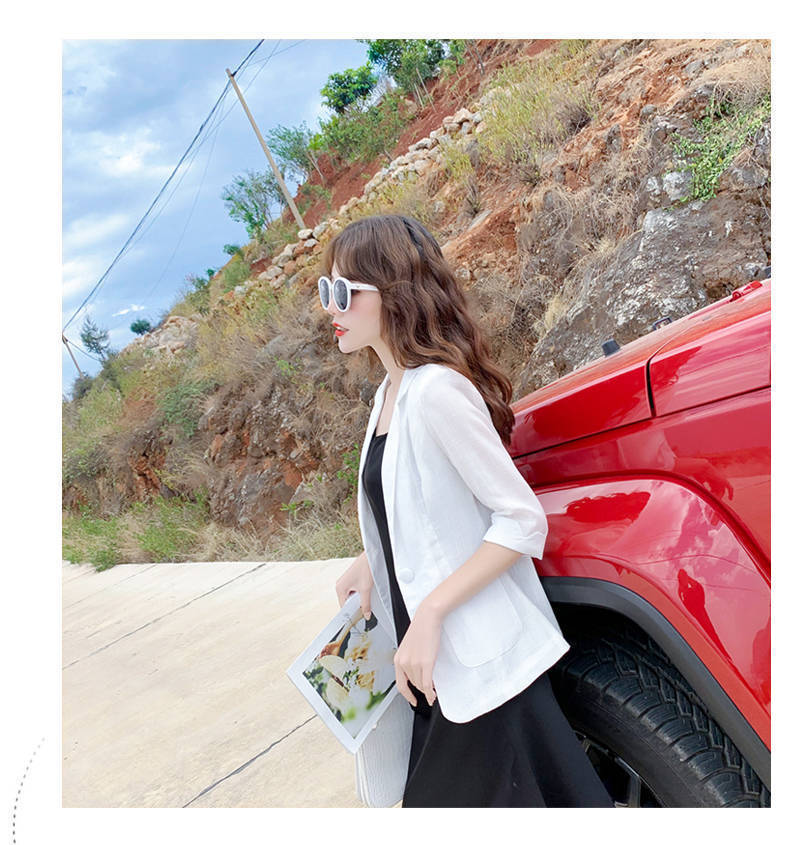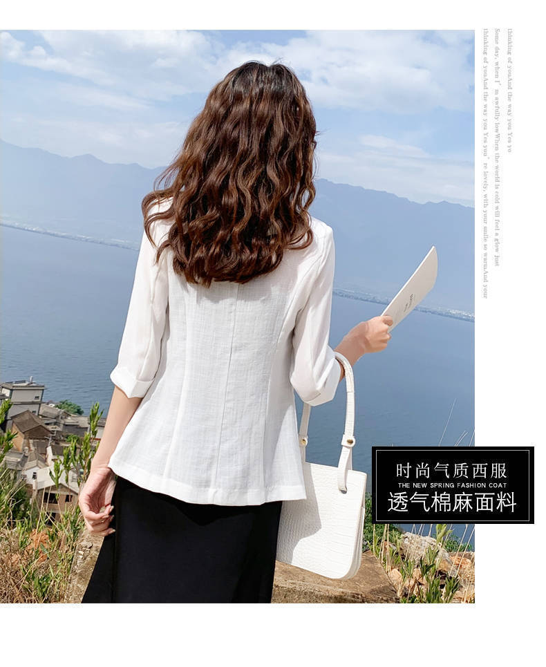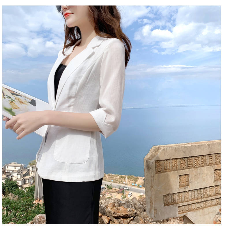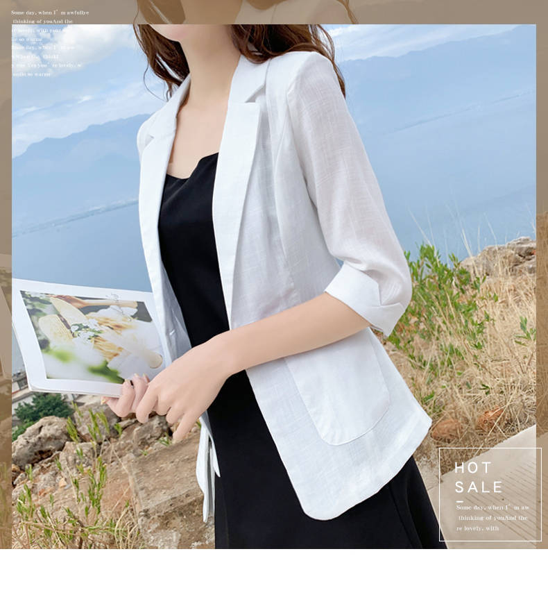 리넨 작은 세트 여성 코트 2025 봄과 여름 새로운 영국 스타일 캐주얼 코튼 및 리넨 짧은 세트 선 스크린 의류스토어 가기