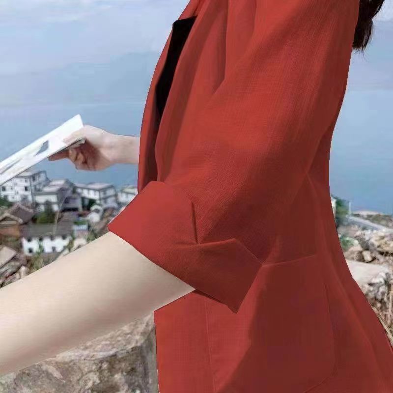 리넨 작은 세트 여성 코트 2025 봄과 여름 새로운 영국 스타일 캐주얼 코튼 및 리넨 짧은 세트 선 스크린 의류