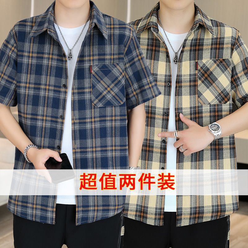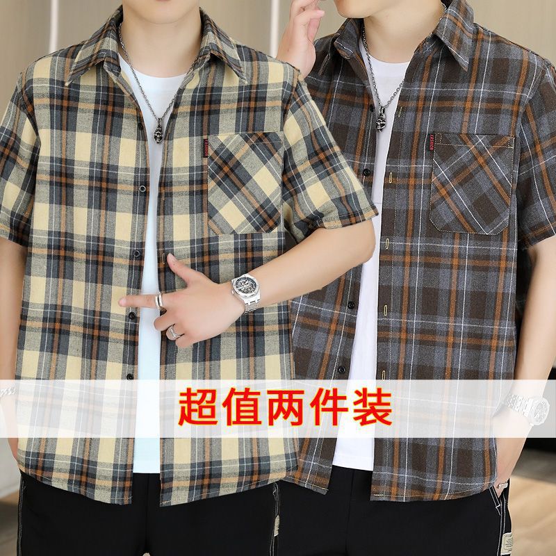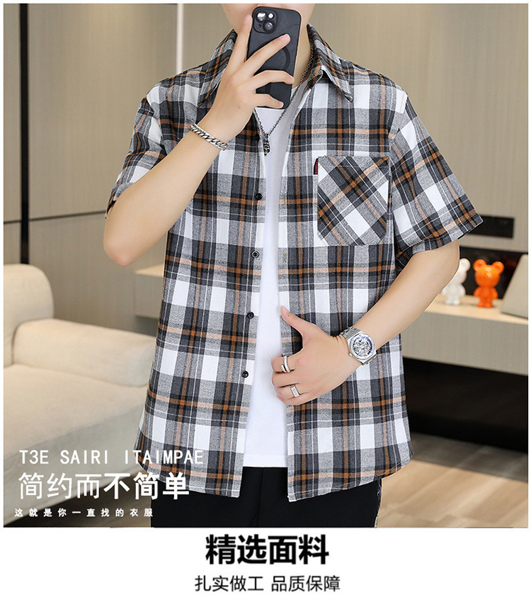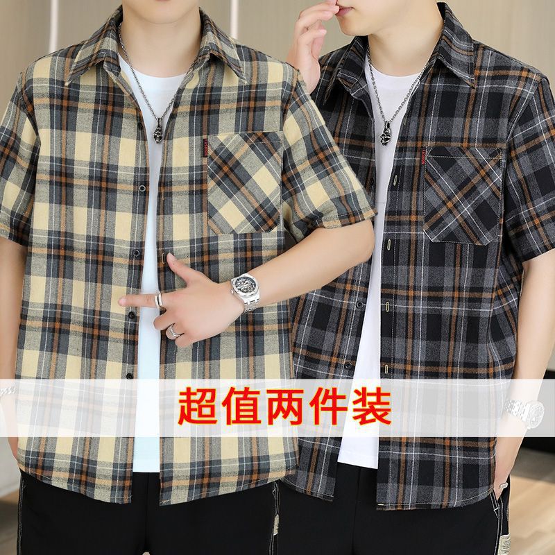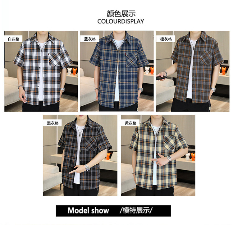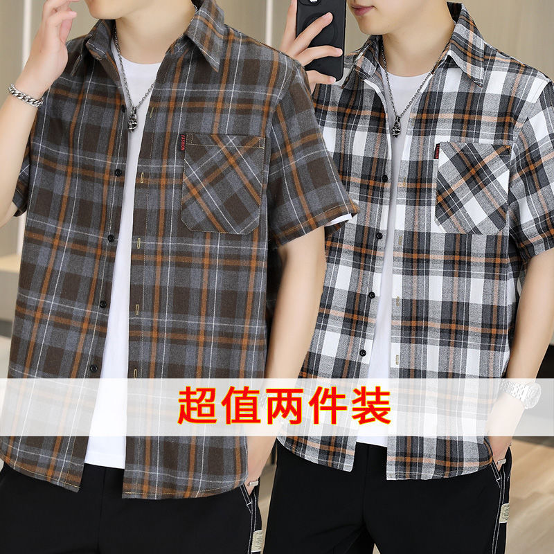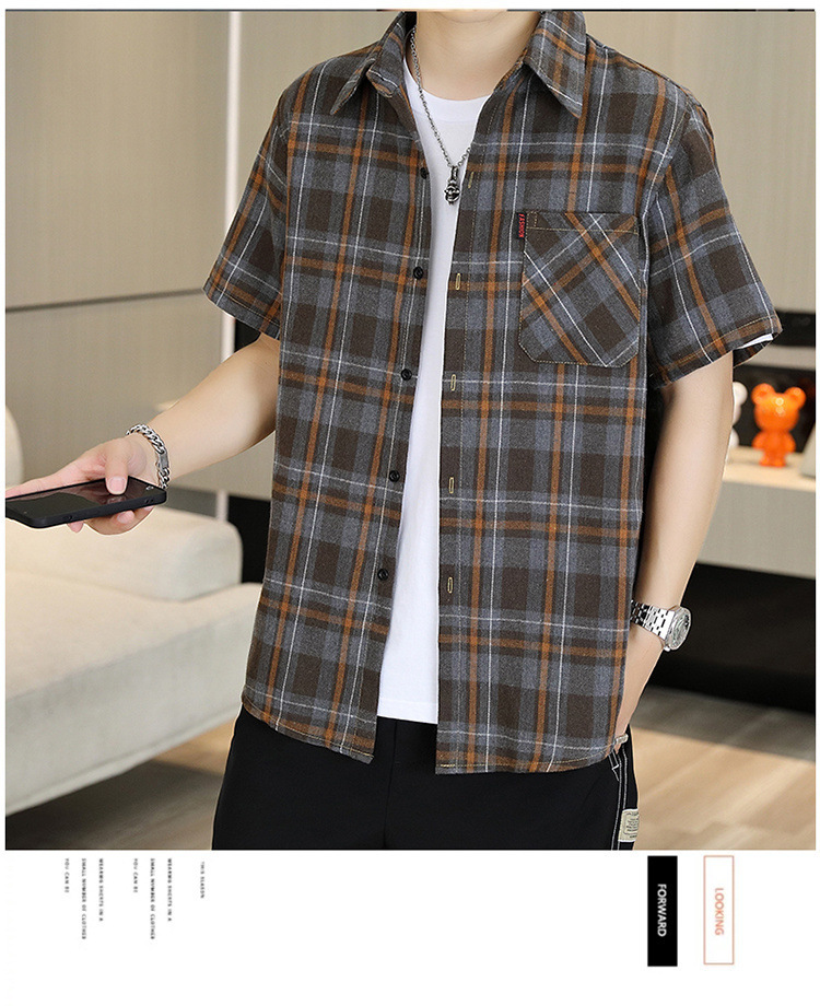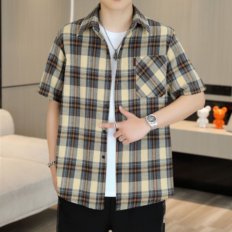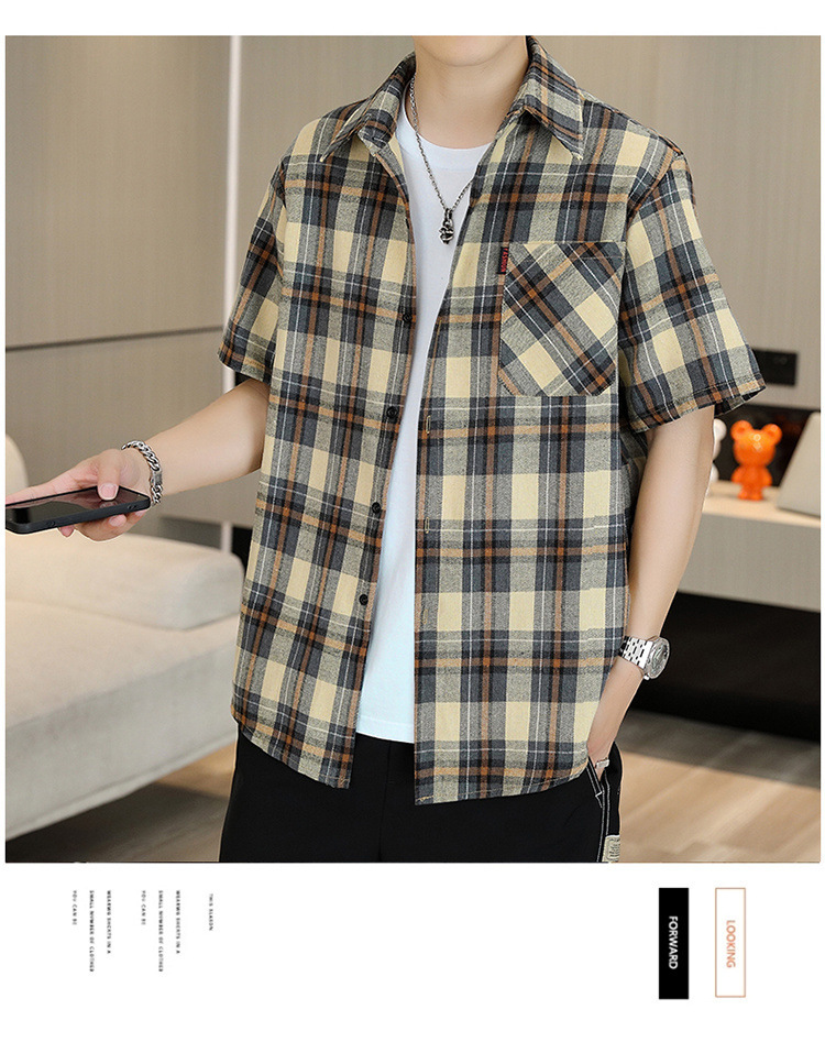 남자 셔츠 새 스타일 여름 반팔 체크 올 매치 셔츠 캐주얼 느슨한 한국 스타일 코트 트렌디 탑