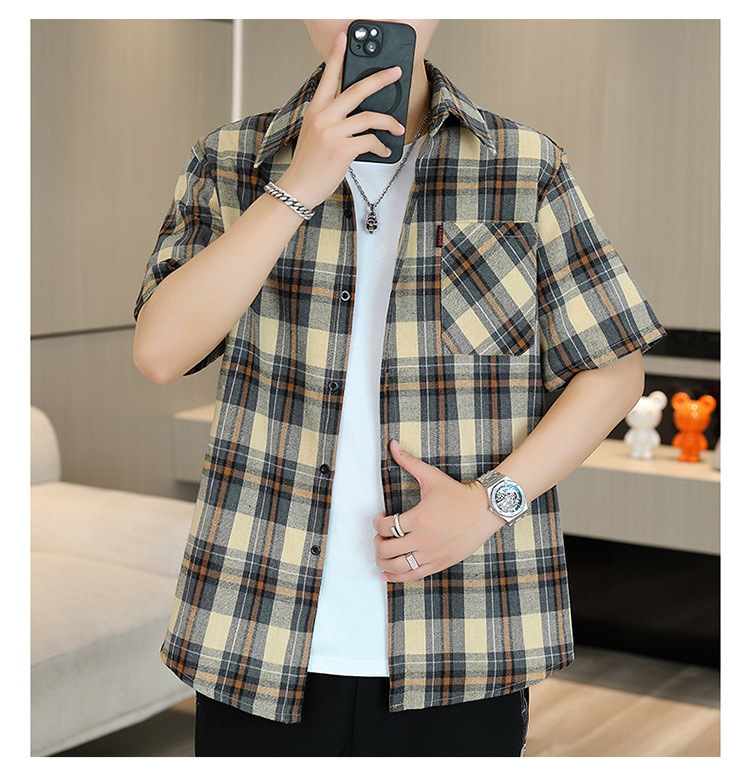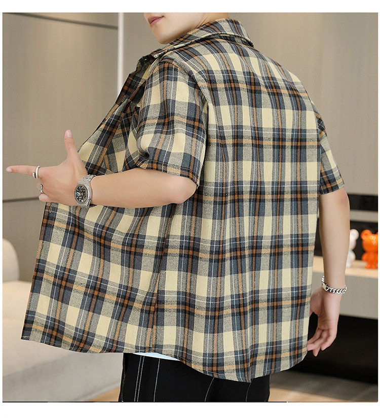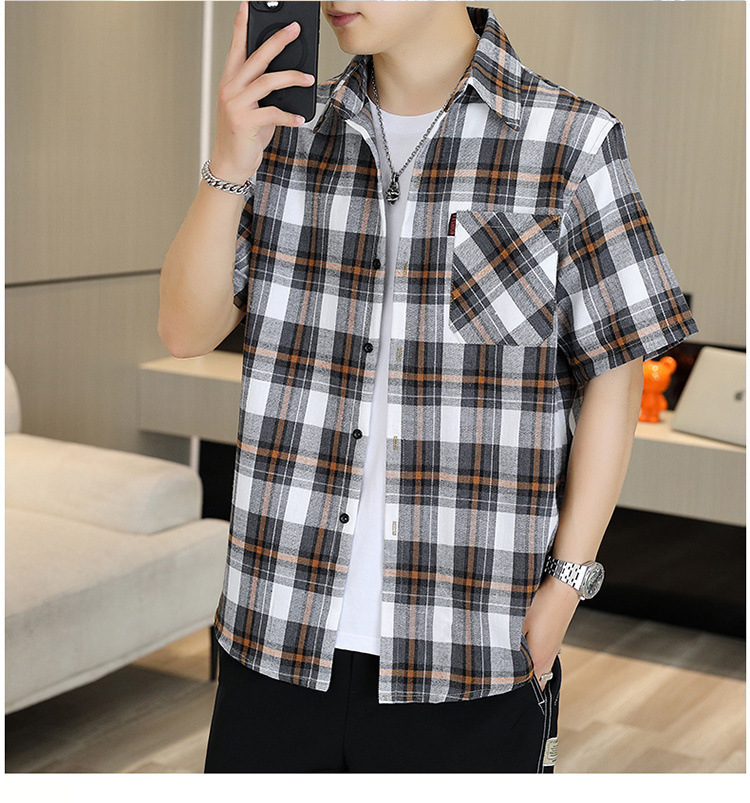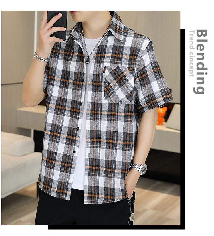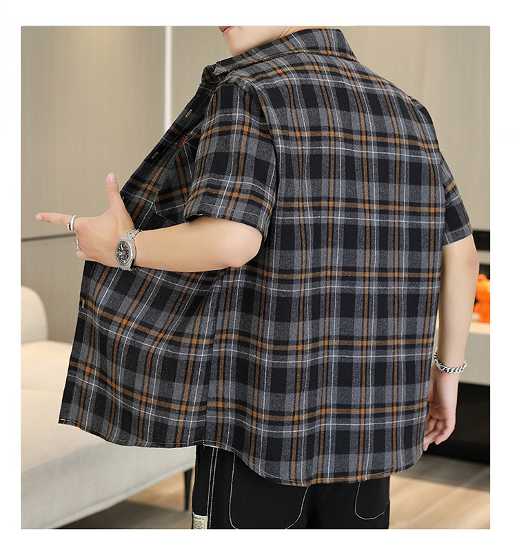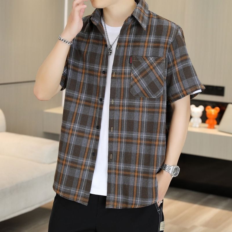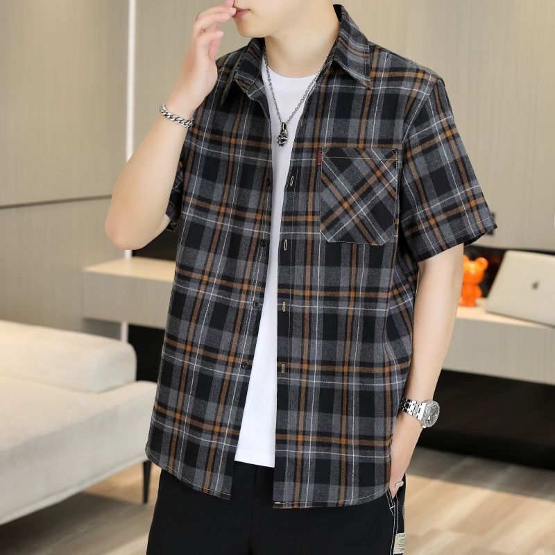 남자 셔츠 새 스타일 여름 반팔 체크 올 매치 셔츠 캐주얼 느슨한 한국 스타일 코트 트렌디 탑스토어 가기