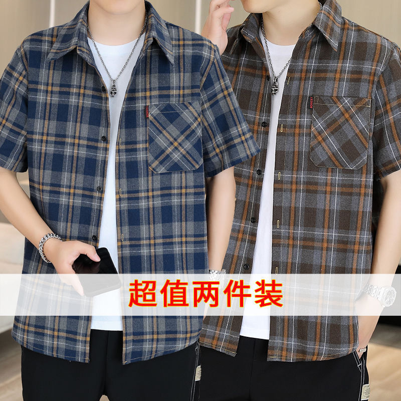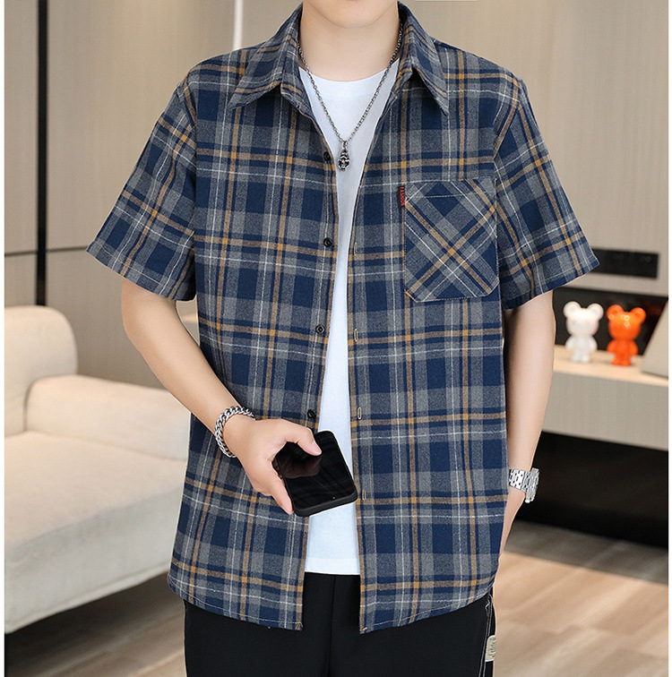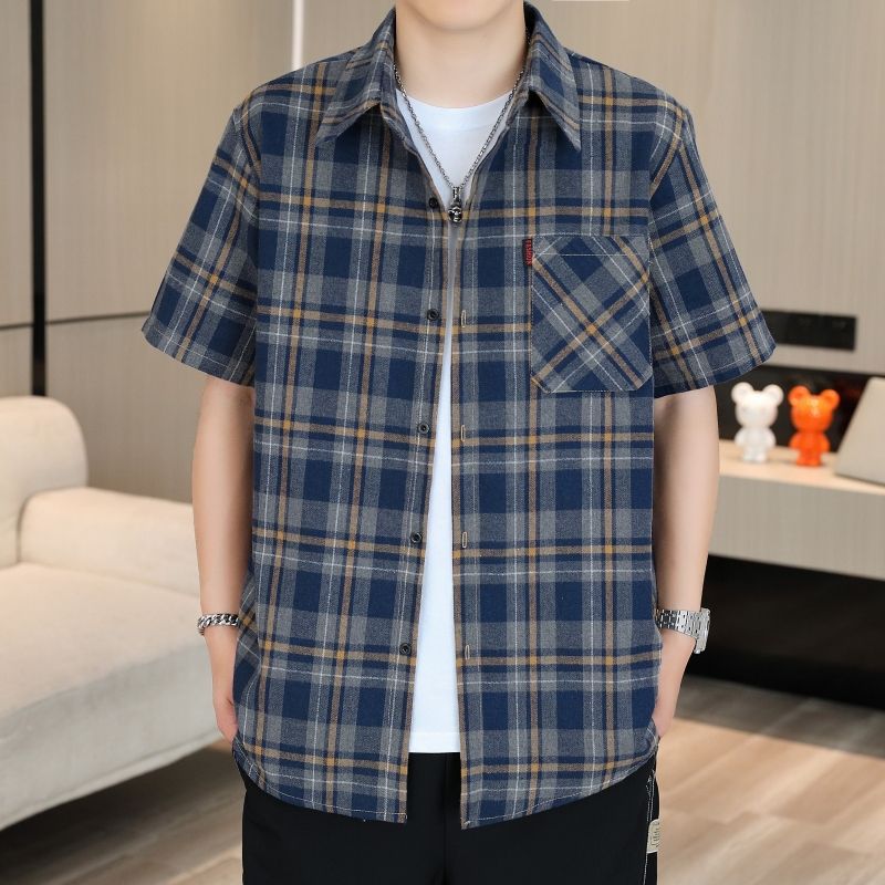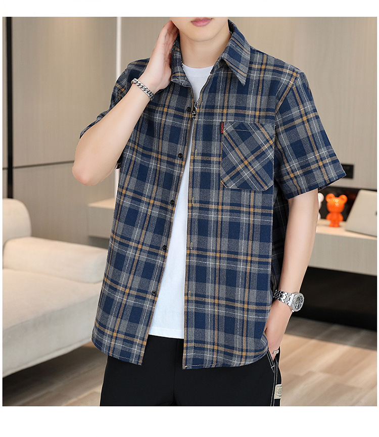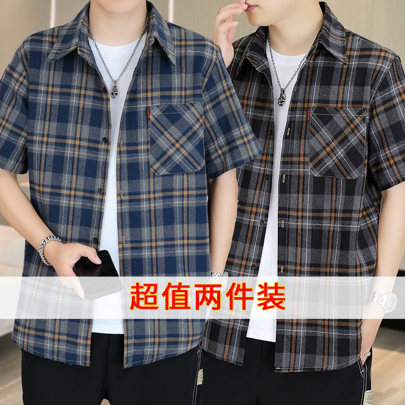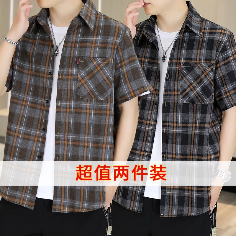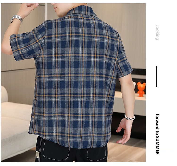 남자 셔츠 새 스타일 여름 반팔 체크 올 매치 셔츠 캐주얼 느슨한 한국 스타일 코트 트렌디 탑스토어 가기