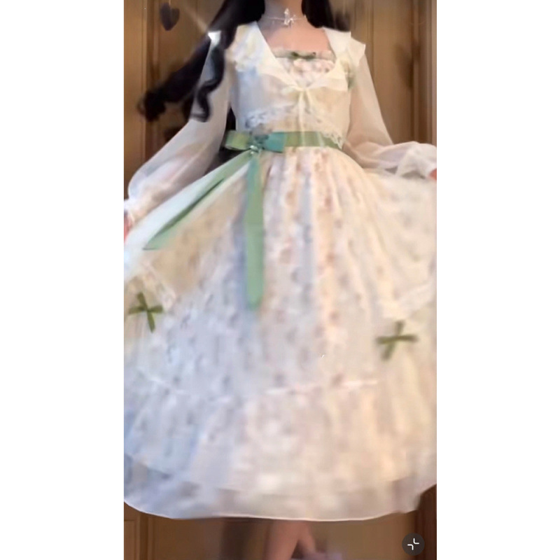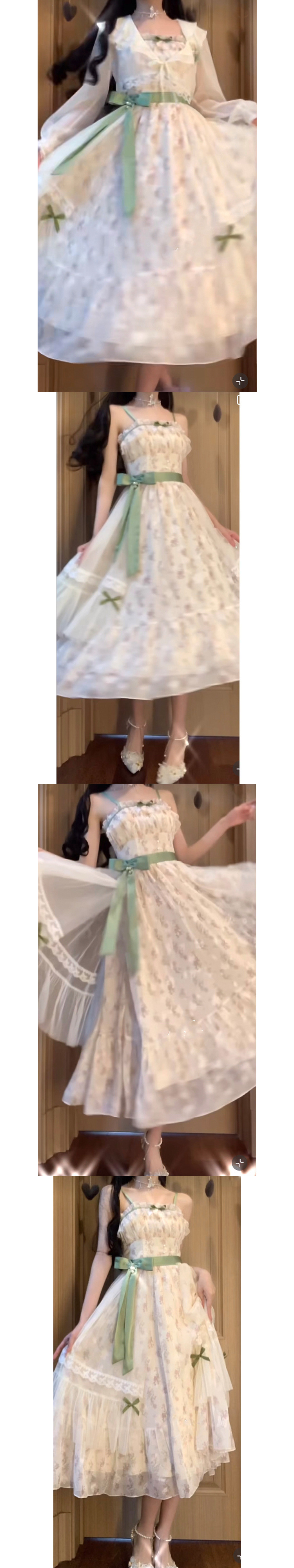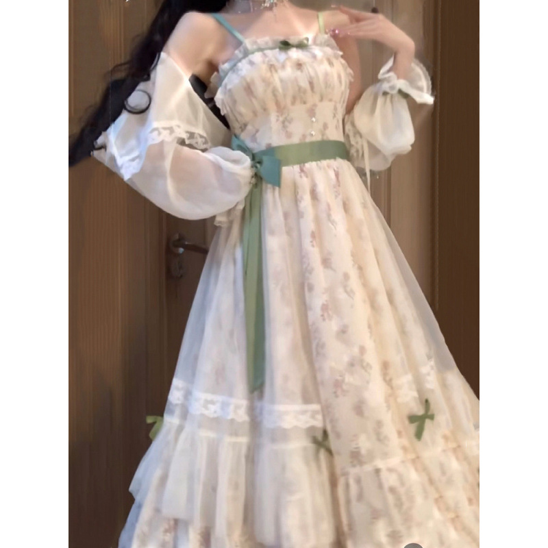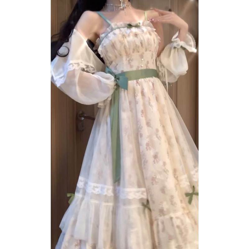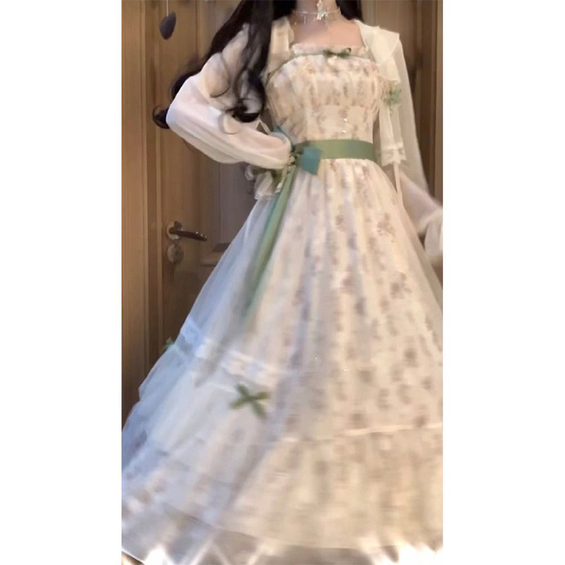 여름 슈퍼 요정 부드러운 스타일 고급 활 꽃 원피스 여성 학생 외부 카디건 세트스토어 가기