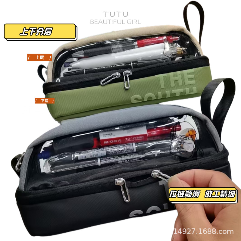새로운 투명 필통 대용량 신형 중학생 문구 가방 초등학생 필통 다기능 연필 도매스토어 가기