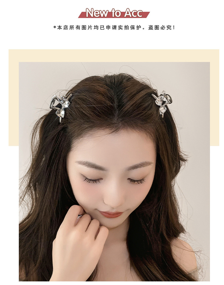 새로운 여름 상어 클립 활 모조 다이아몬드 그립 클립 이마 앞머리 가장자리 클립 반짝이는 기질 달콤한 헤어 액세서리 머리핀